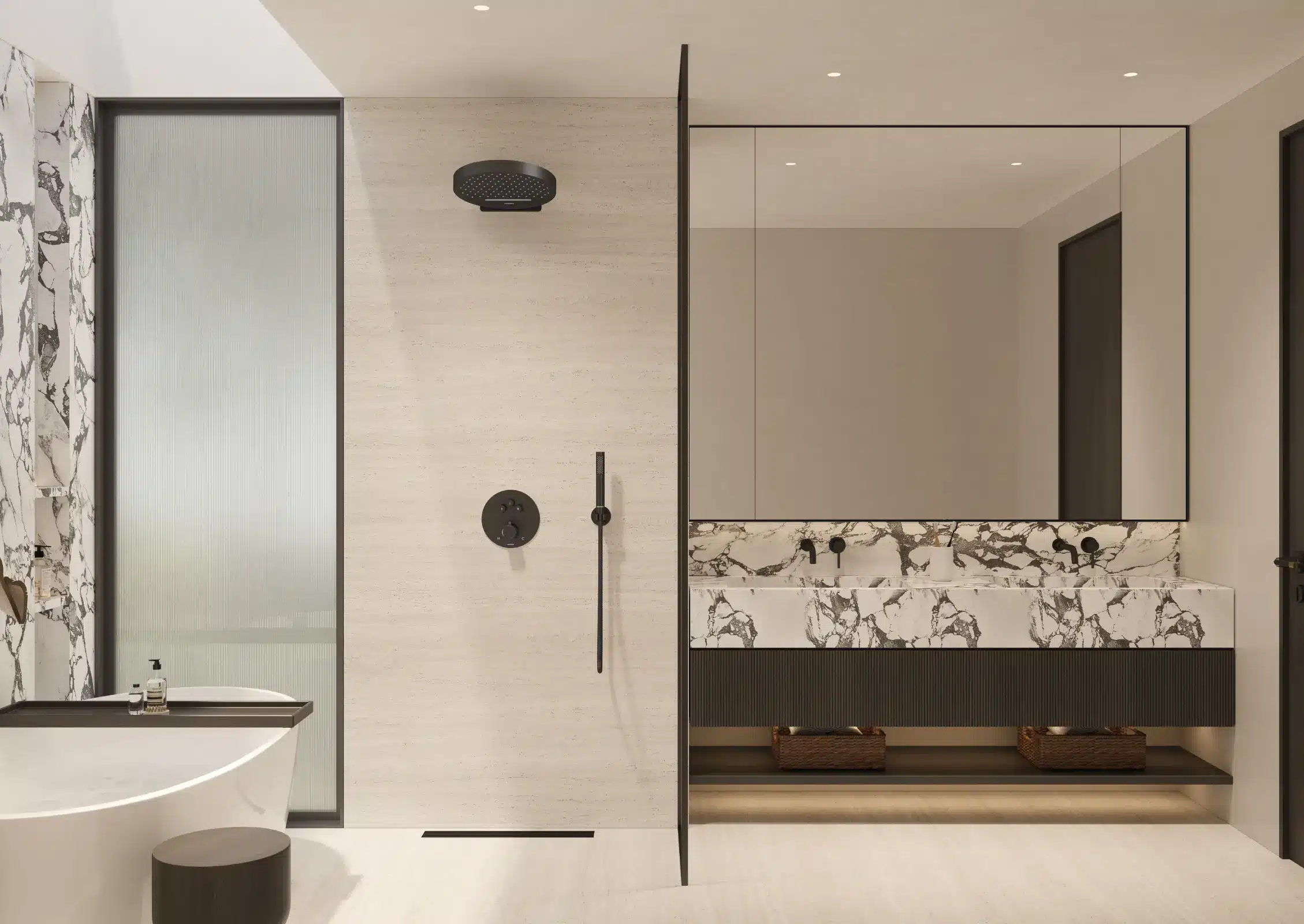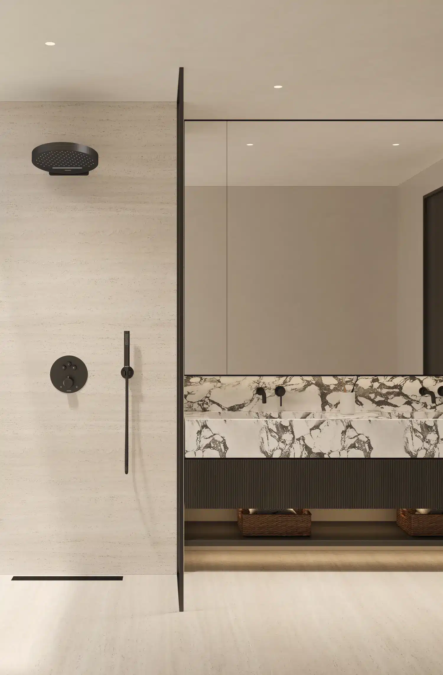 A complete hardware solution for the modern bathroom – featuring designer faucets, sculptural shower systems, and precisely crafted accessories.