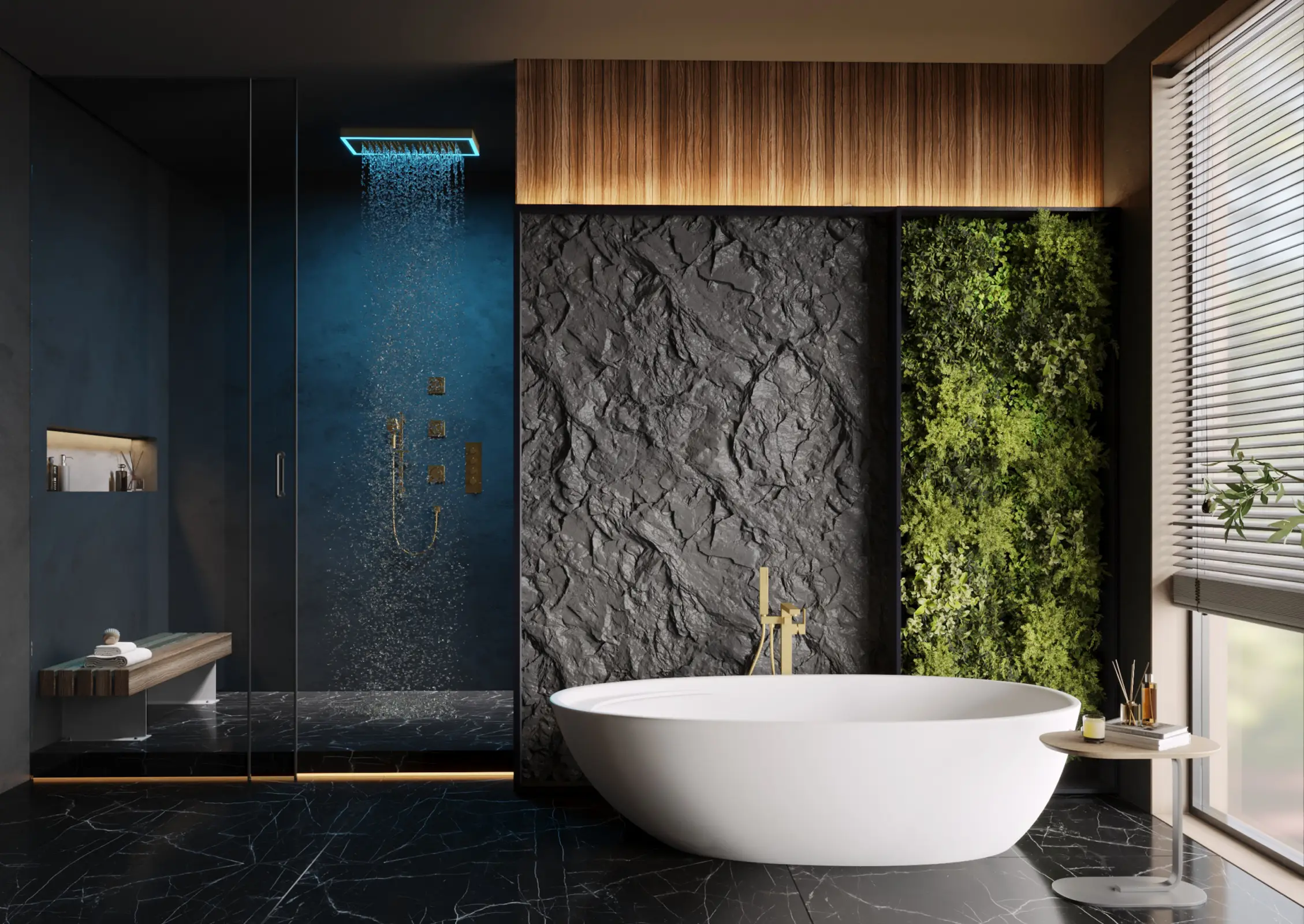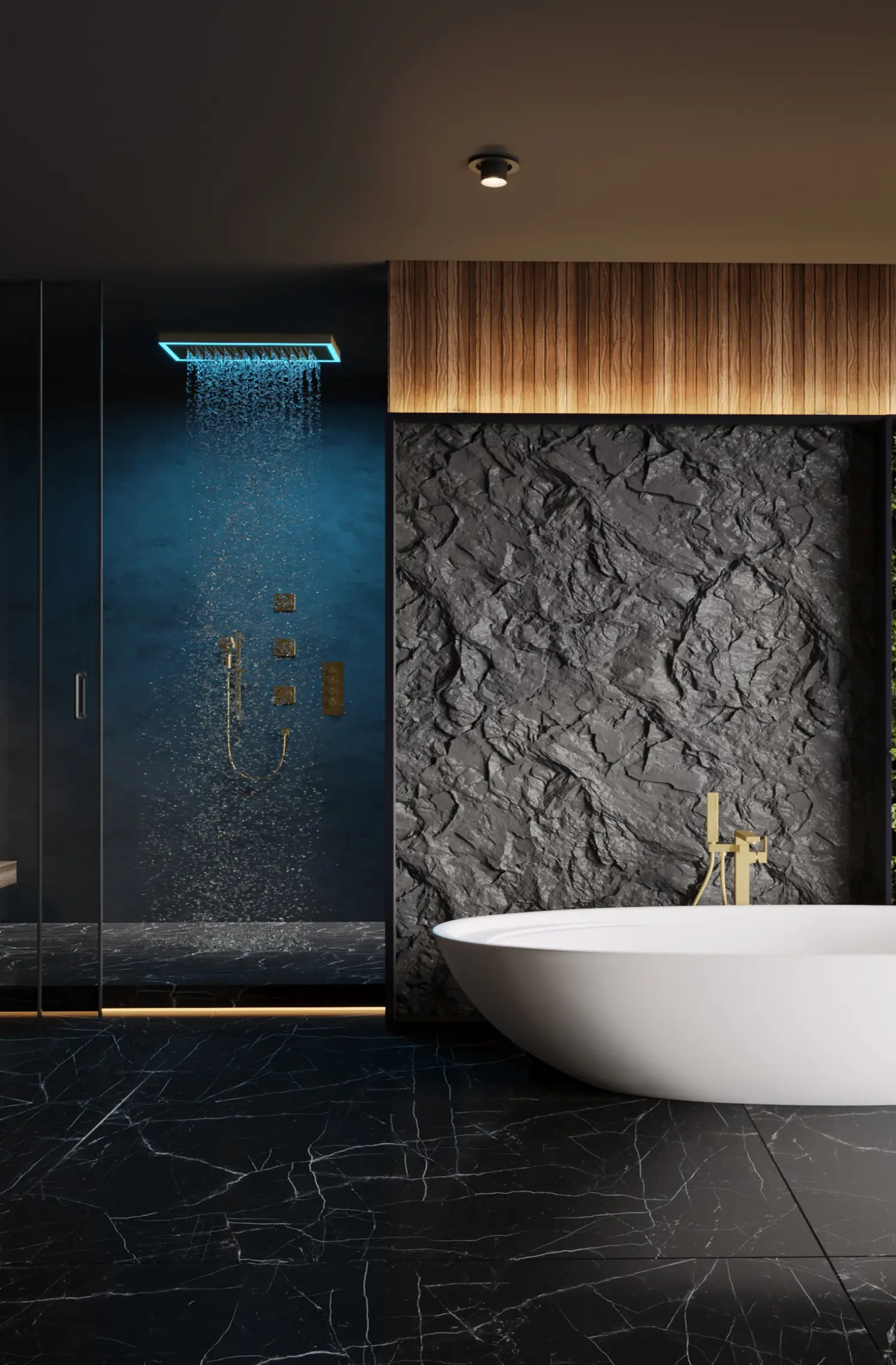 A multisensory shower solution combining hydrotherapy, chromatic light, and acoustic resonance – crafted to bring spa – grade restoration into residential spaces.