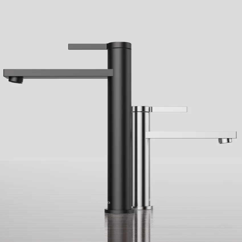 A sculptural faucet program crafted for culinary rhythm – from central islands to bar stations – combining reach, proportion, and material clarity.