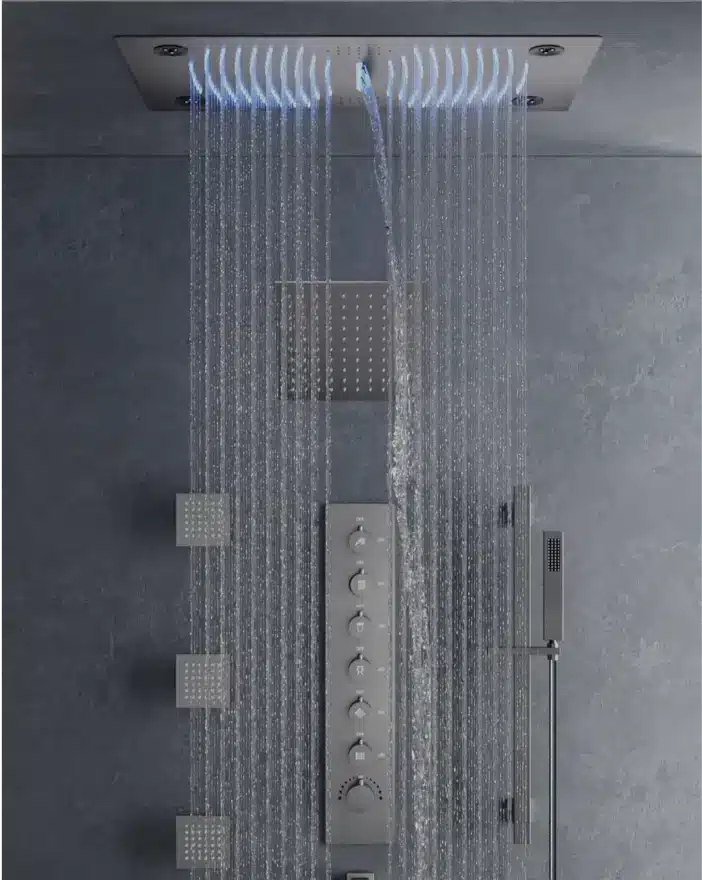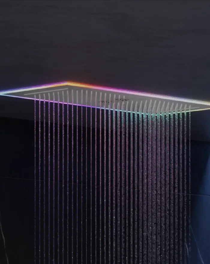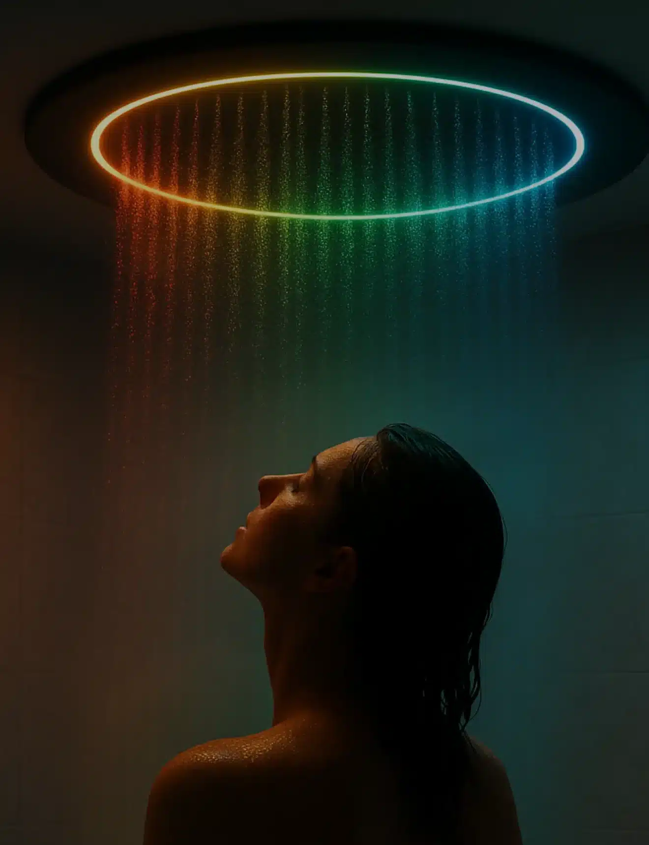 Seamlessly integrated into rain showers, with up to 64 adjustable LED color settings — empowering users to fine-tune their wellness experience through manual spectrum control.