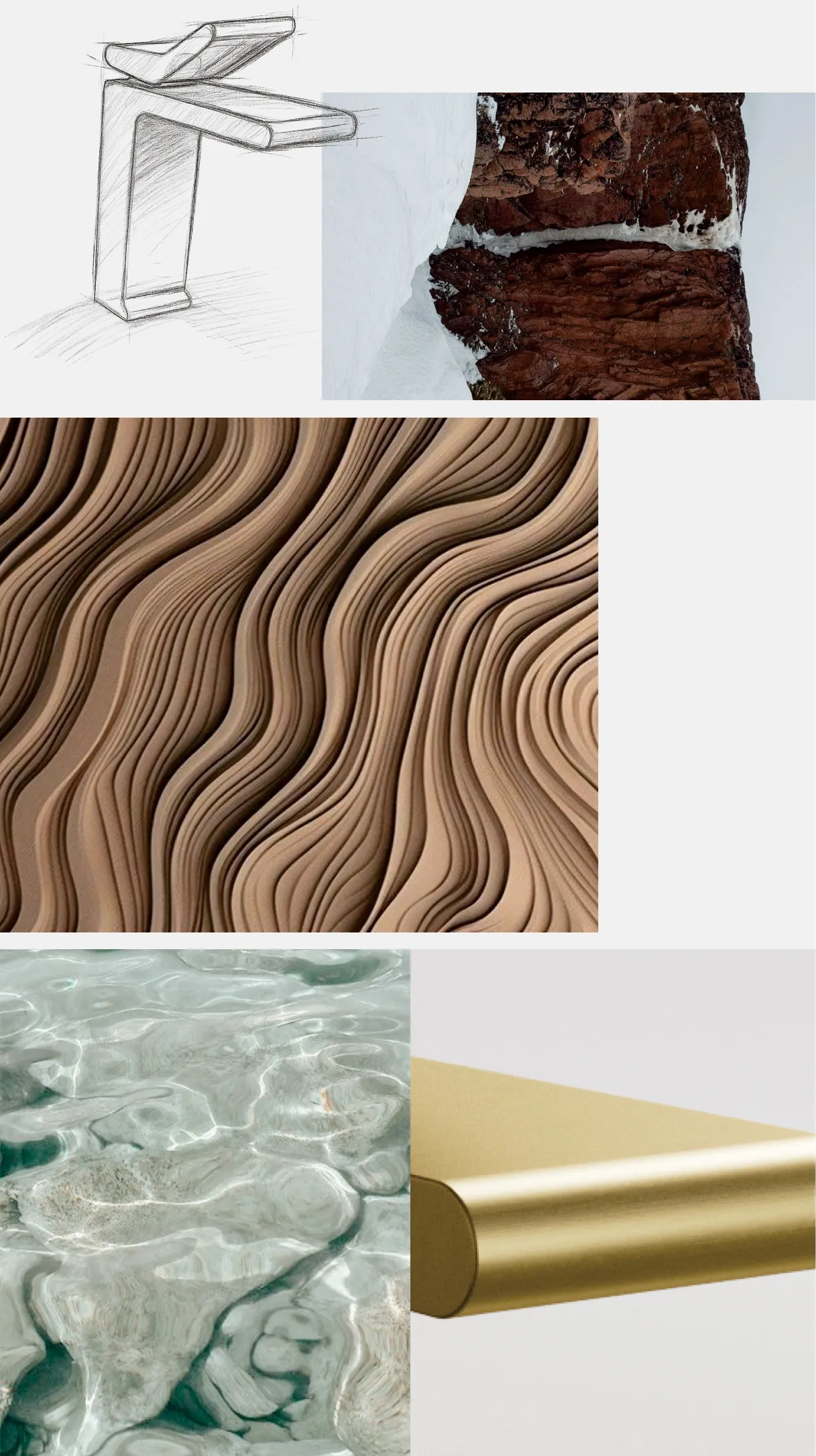 Farne’s genesis came from immersion in the slow dialogue of water shaping stone. Studying everything from wave‑cut cliffs and wind‑softened rock to rippled water lines led to the main inspiration behind the softened edges and planar handle—a design language of strong geometry born of nature.