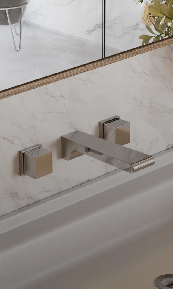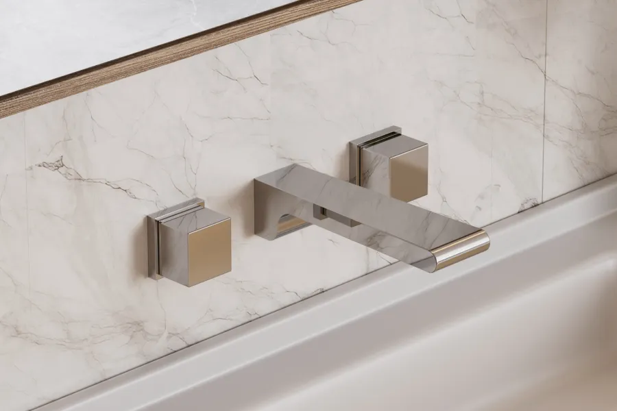 The Farne 3-hole wall-mounted faucet leverages its inherent symmetry to create a powerful sense of order and balance. This configuration liberates the countertop, while its precision-engineered internals ensure consistent performance—perfectly uniting minimalist aesthetics with function in a single statement.