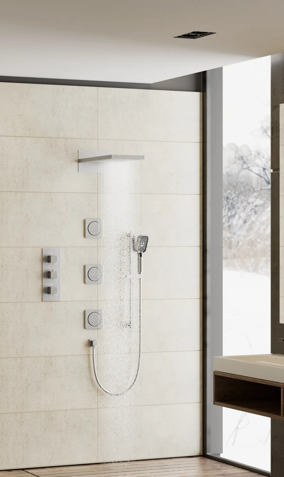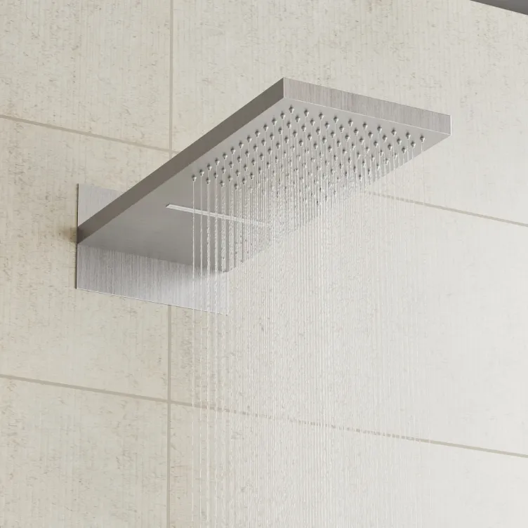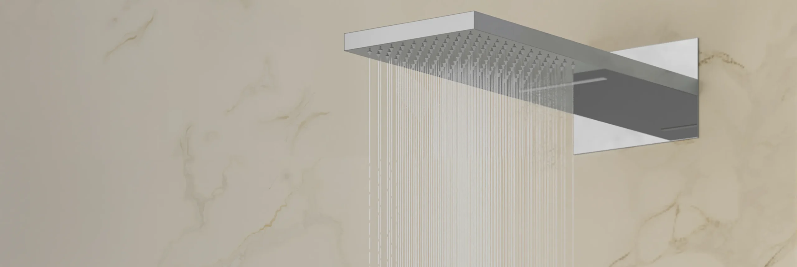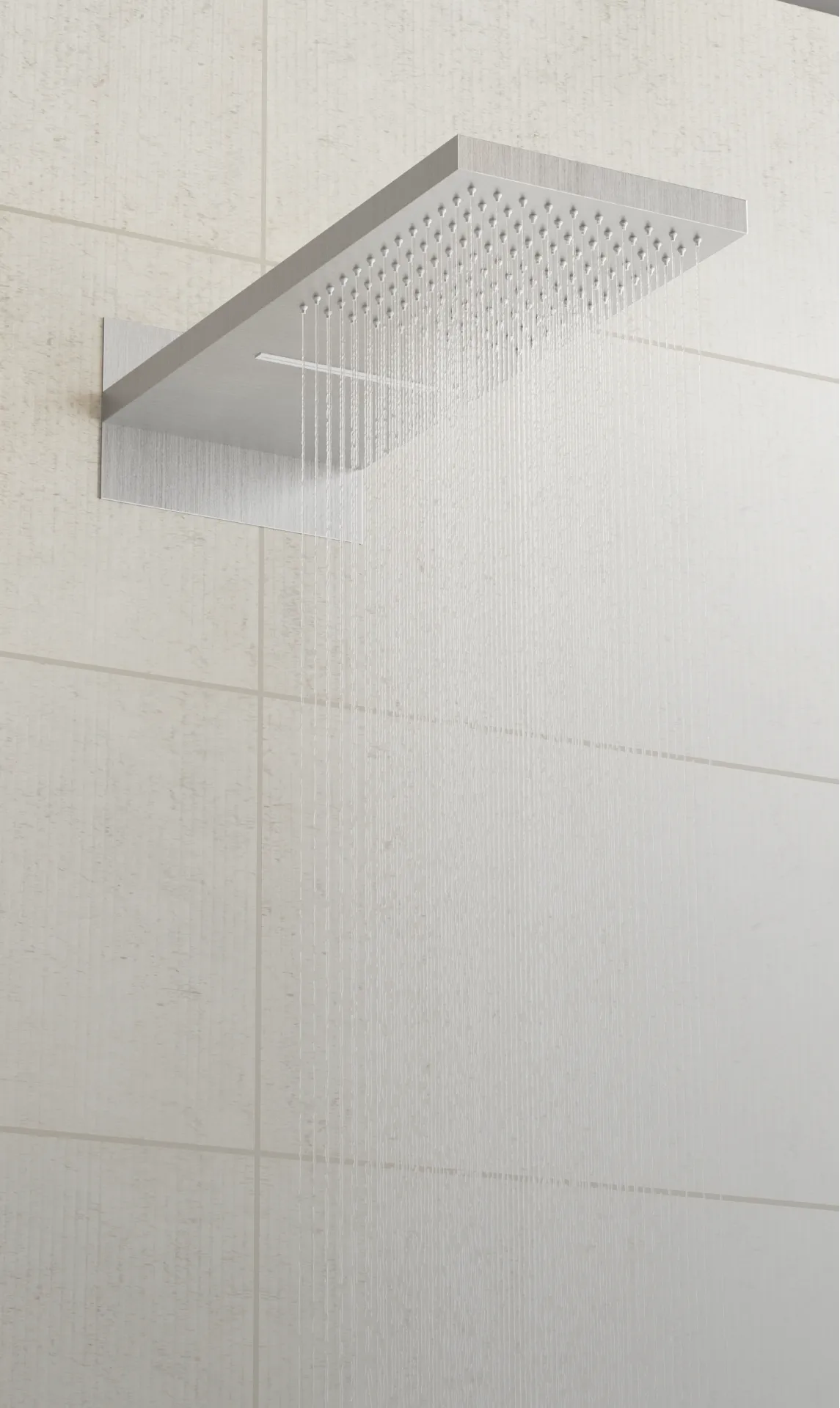 Immerse in a smooth, sheet-like cascade with the Gough waterfall outlet. The continuous flow delivers focused relaxation, framed by the series’s architectural edges and refined metal surfaces for a striking spa effect.