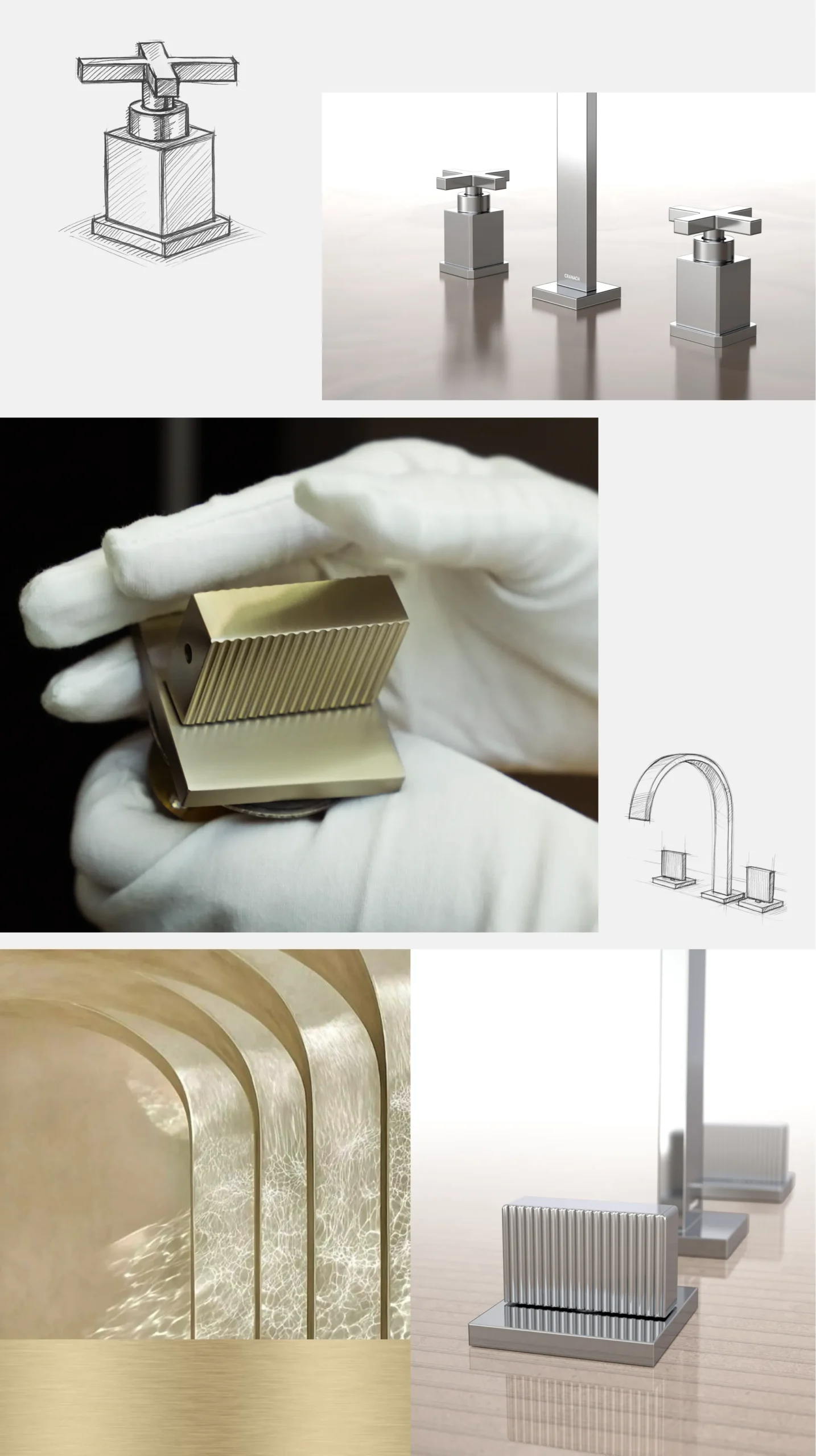 Rugen’s genesis came from immersion in structural archetypes—arc, line, and intersection. Studying everything from arched thresholds and linear spans to cross‑shaped backplates led to the main inspiration behind the arched spout and fluted handles—a measured vocabulary for modern ritual.