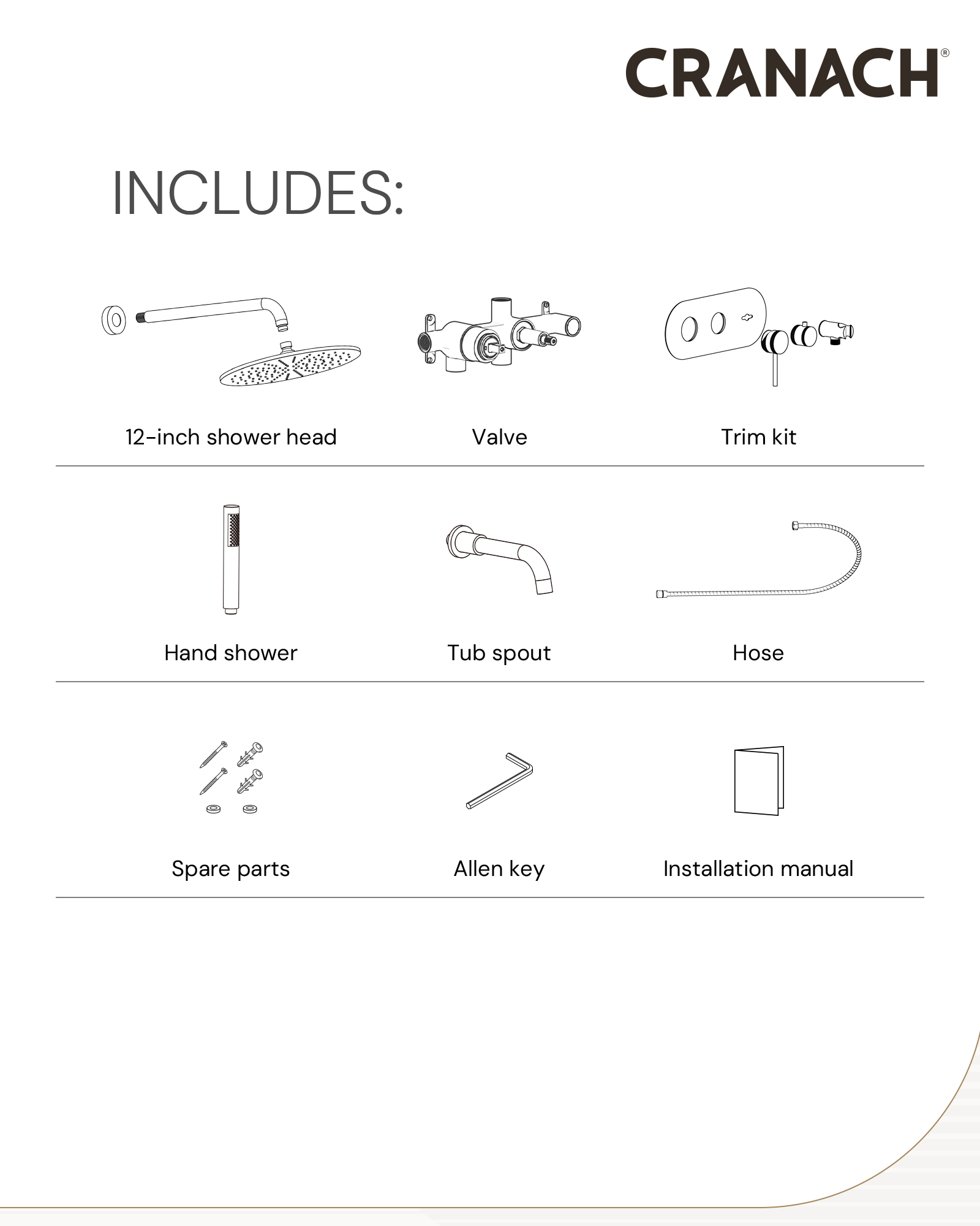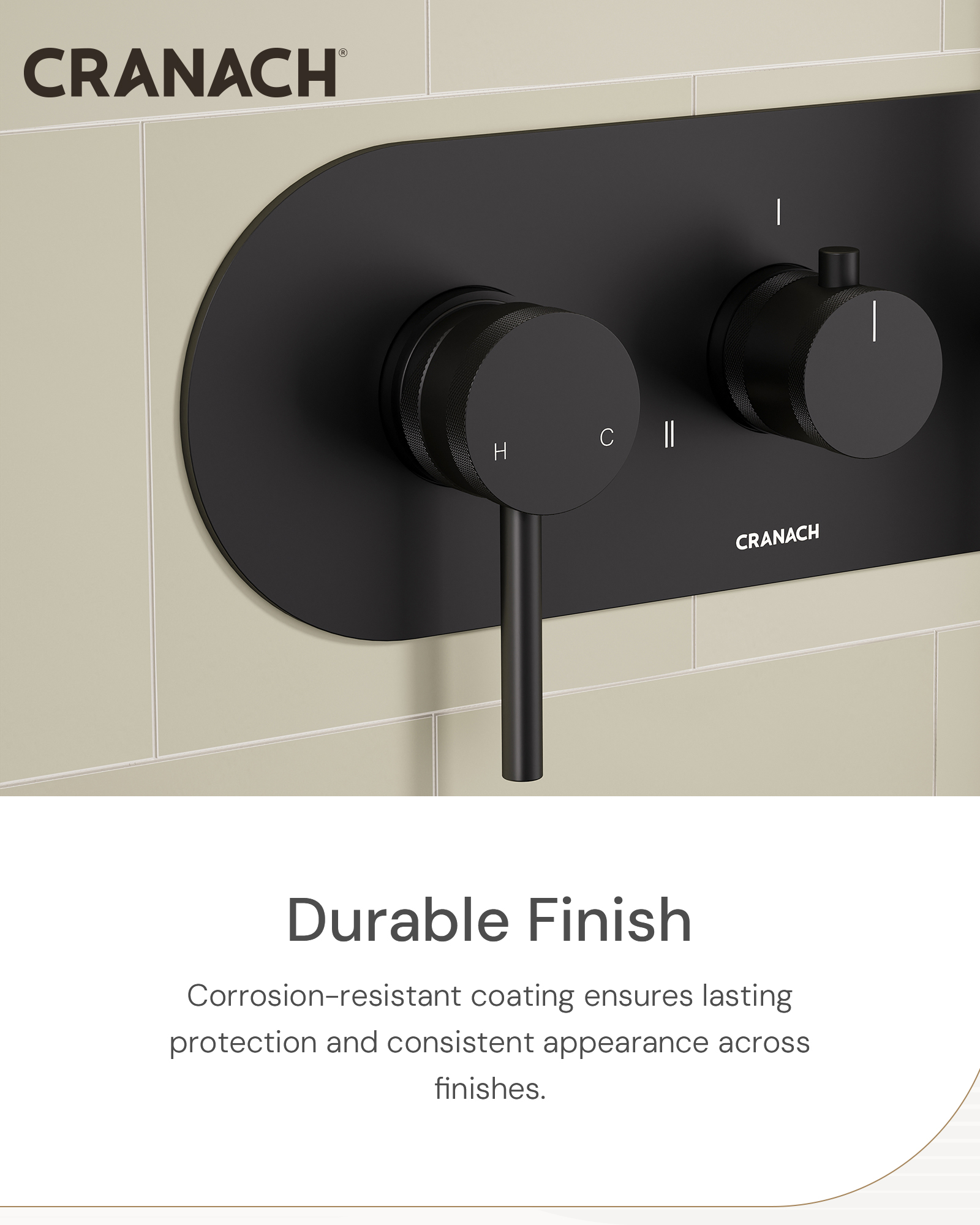 • Ceramic cartridge, crafted in Europe, and brass valve body ensure exceptional durability and reliability.