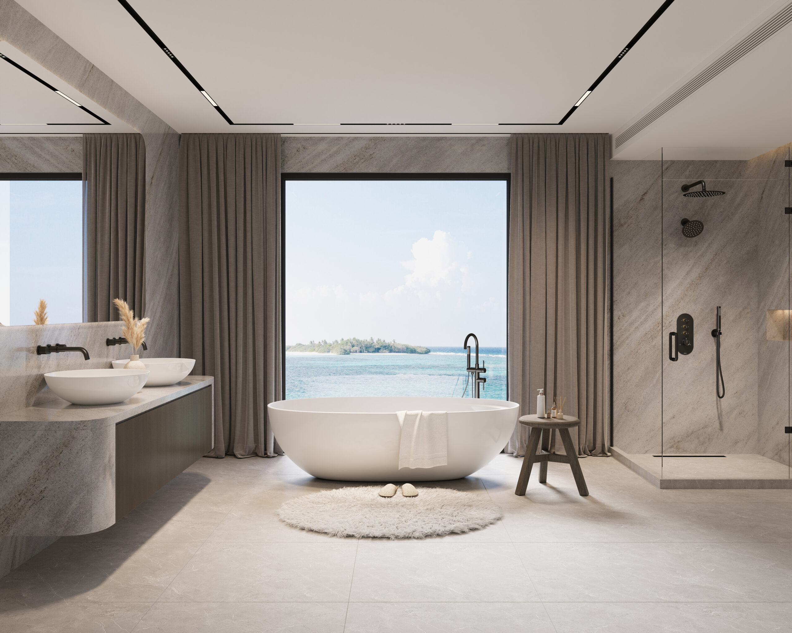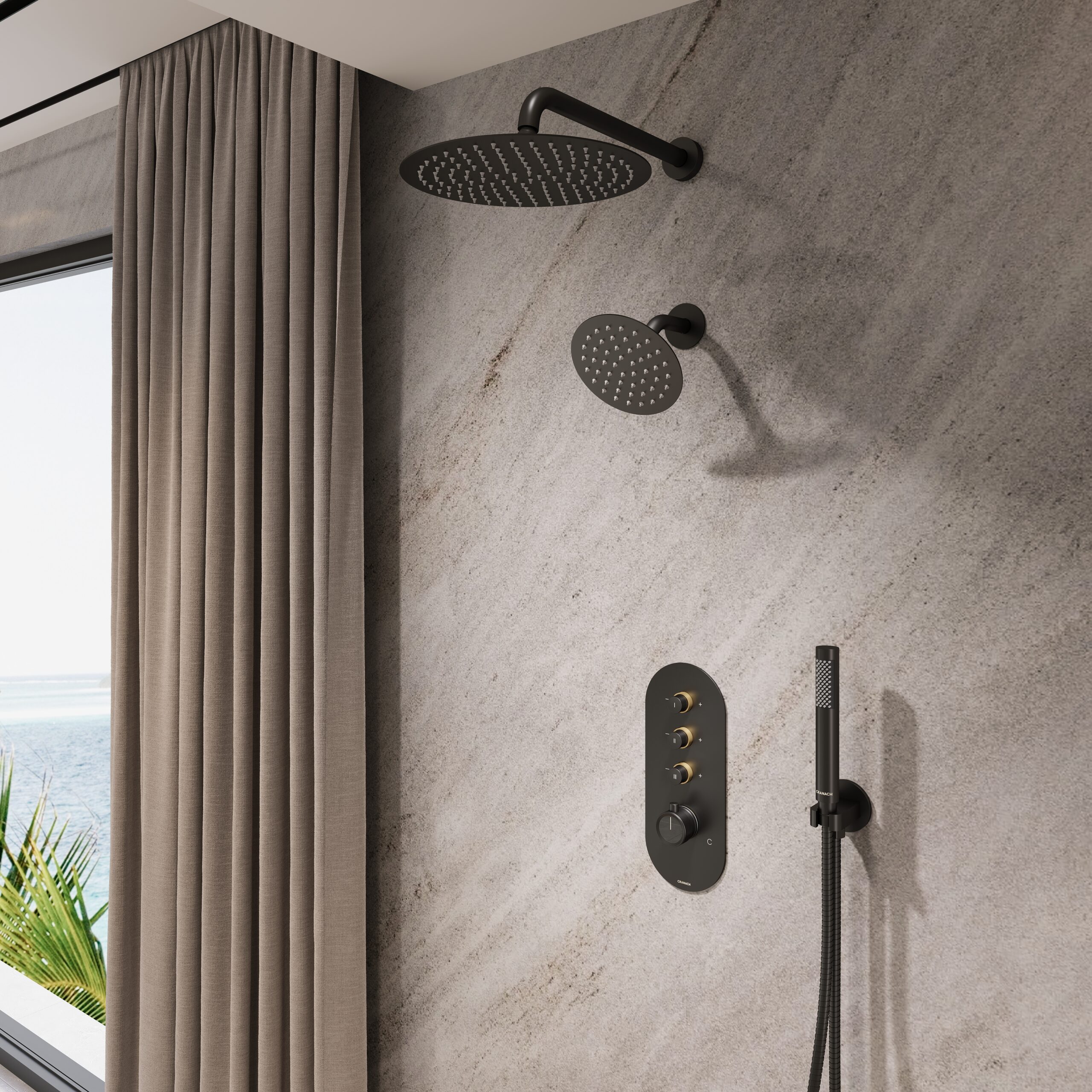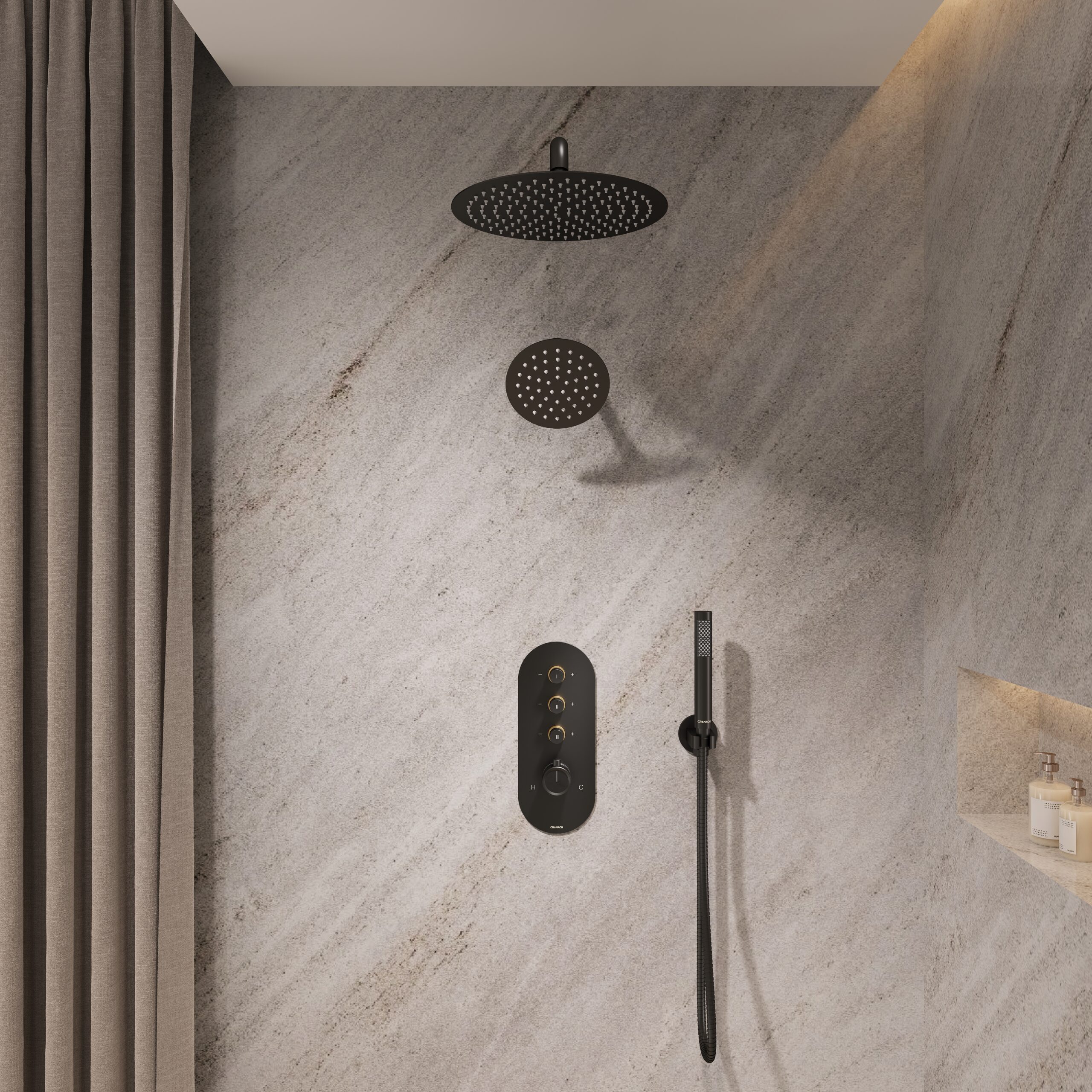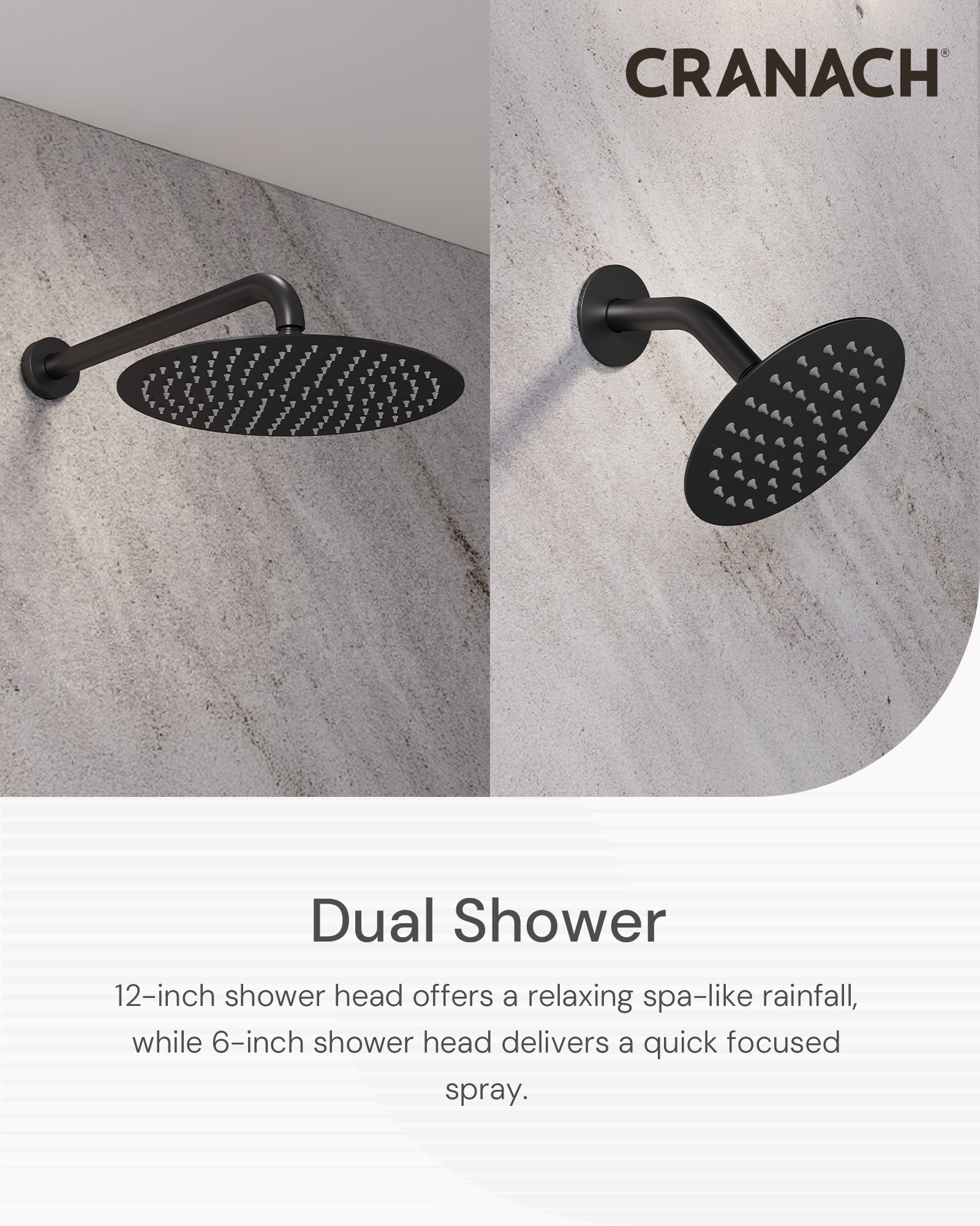 12″ and 6″ dual shower head system with valve