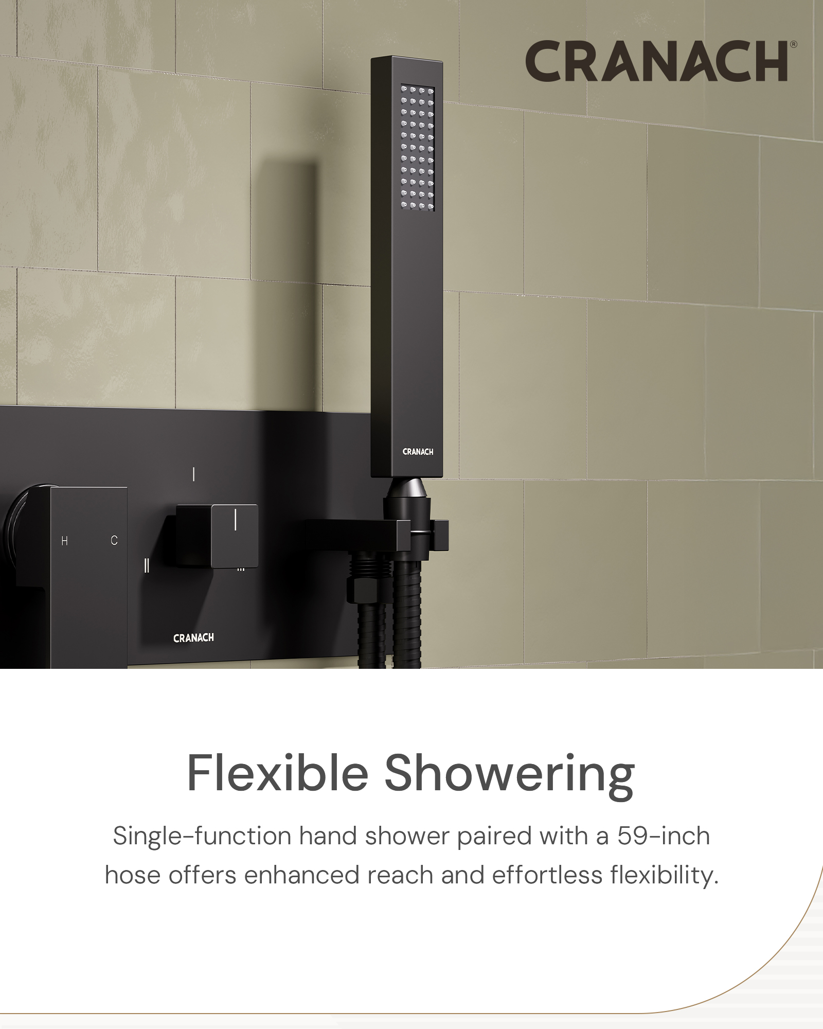 • Handshower delivers a rain spray with a wall-mounted holder and 59-inch metal hose for added convenience and flexibility.