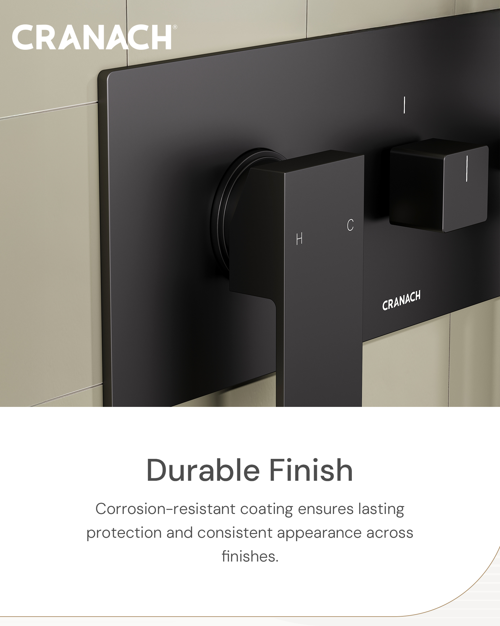 • Ceramic cartridge, crafted in Europe, and brass valve body ensure exceptional durability and reliability.