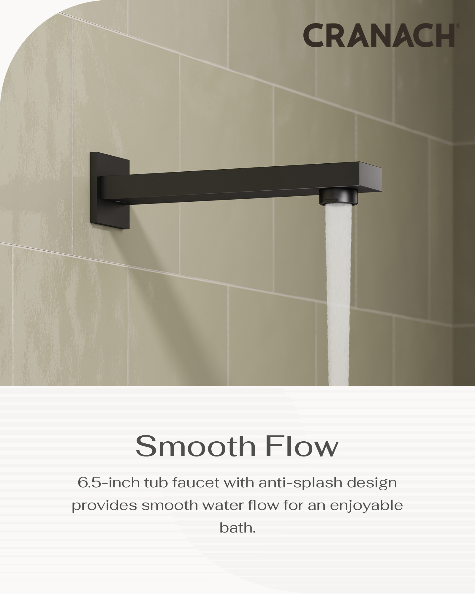 • 8-inch threaded tub spout with anti-splash design delivers smooth and even water flow.