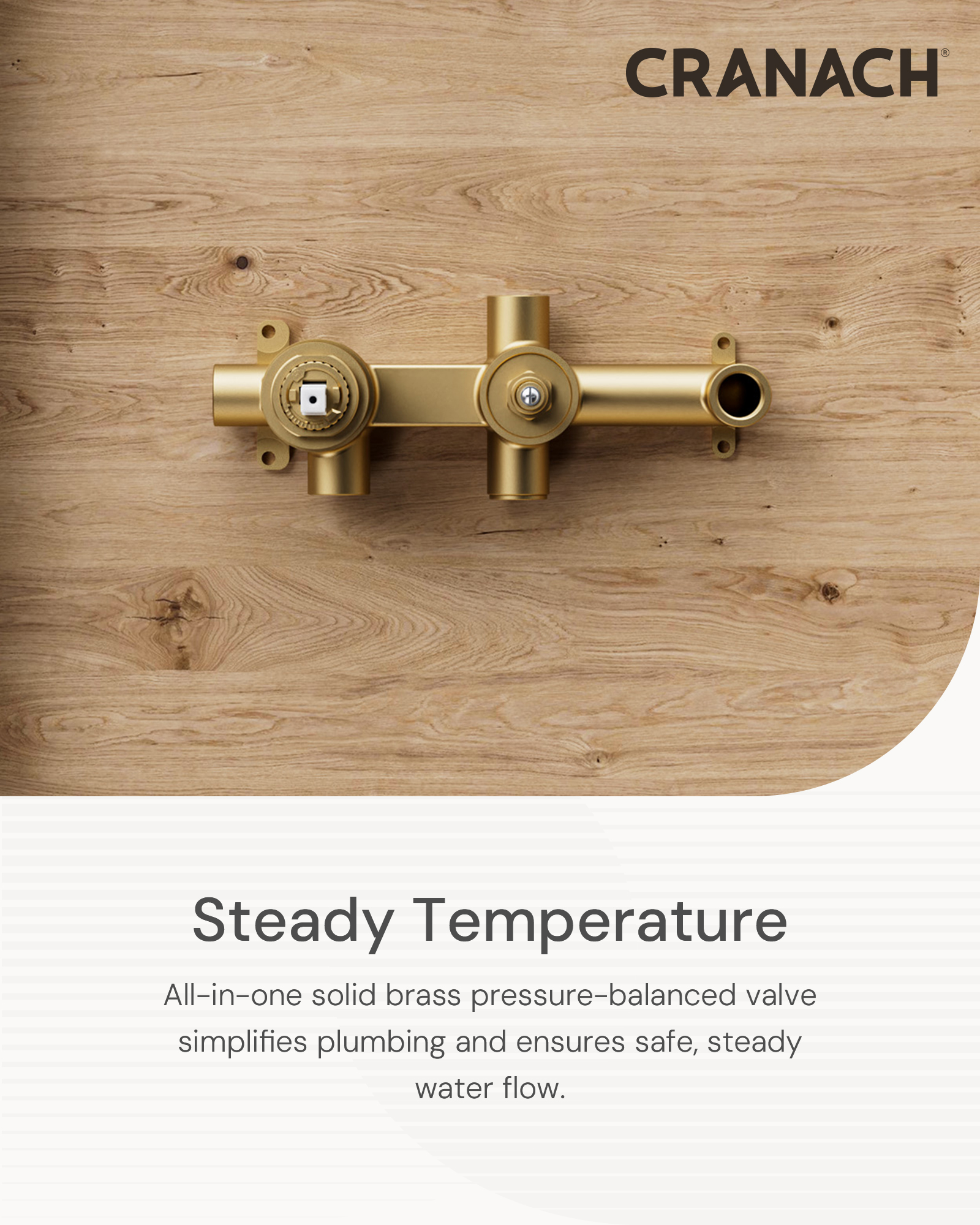 • Pressure balance valve keeps water temperature stable, preventing sudden changes caused by uneven hot or cold water pressure.