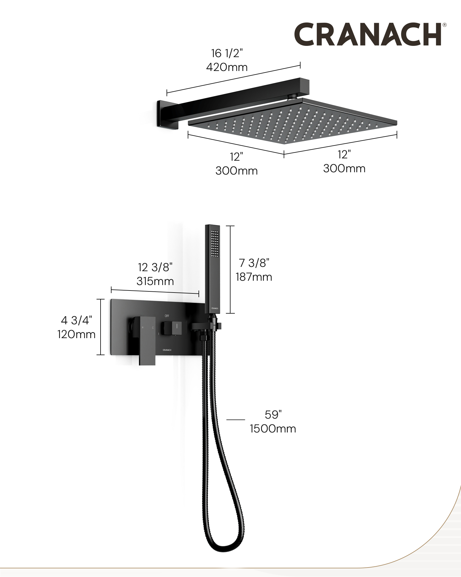 • Handshower Appearance: Square