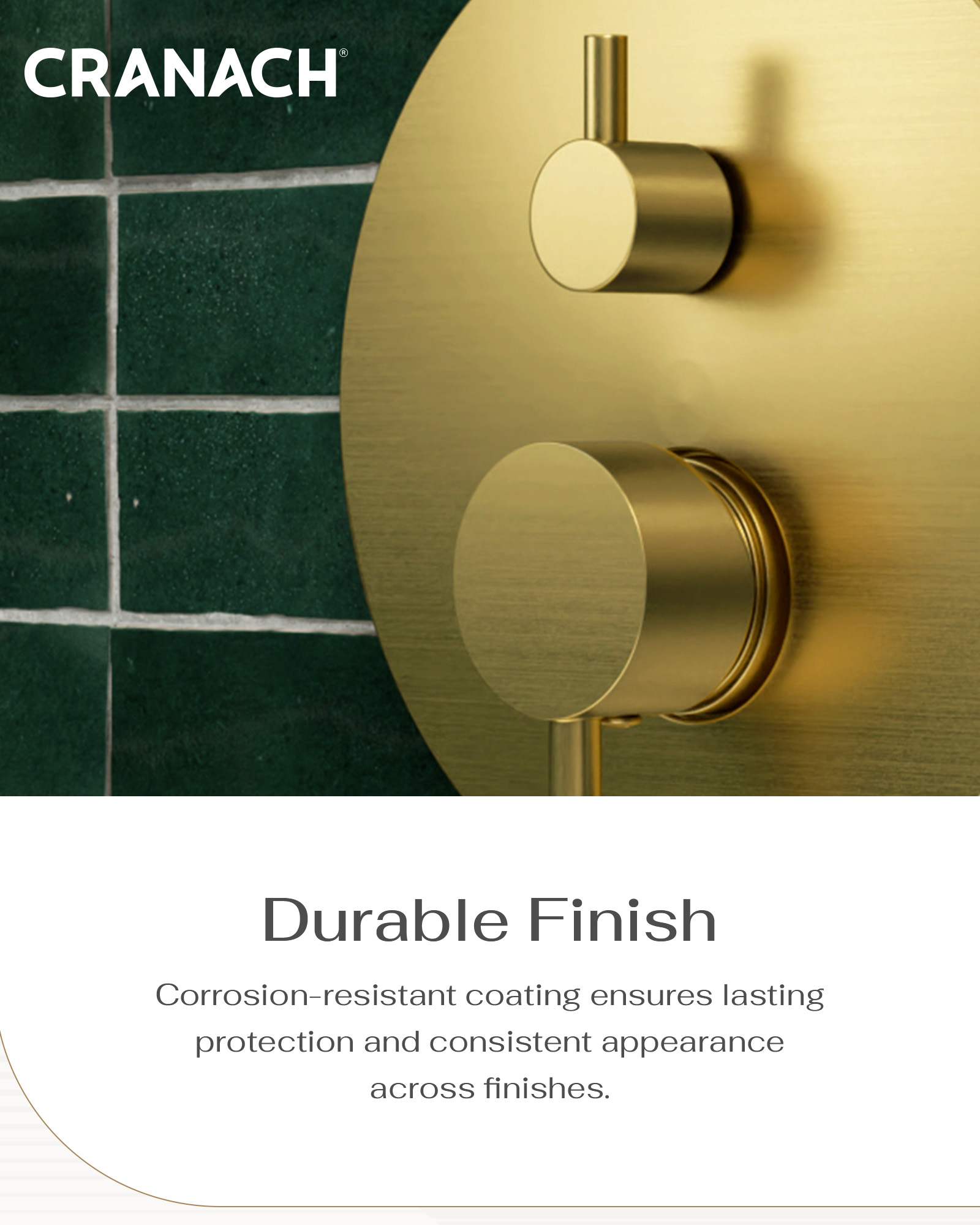 • Ceramic cartridge, crafted in Europe, and brass valve body ensure exceptional durability and reliability.