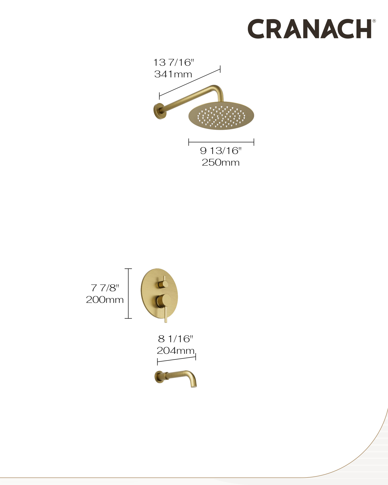 • Showerhead Size: 9 13/16″ (250mm)