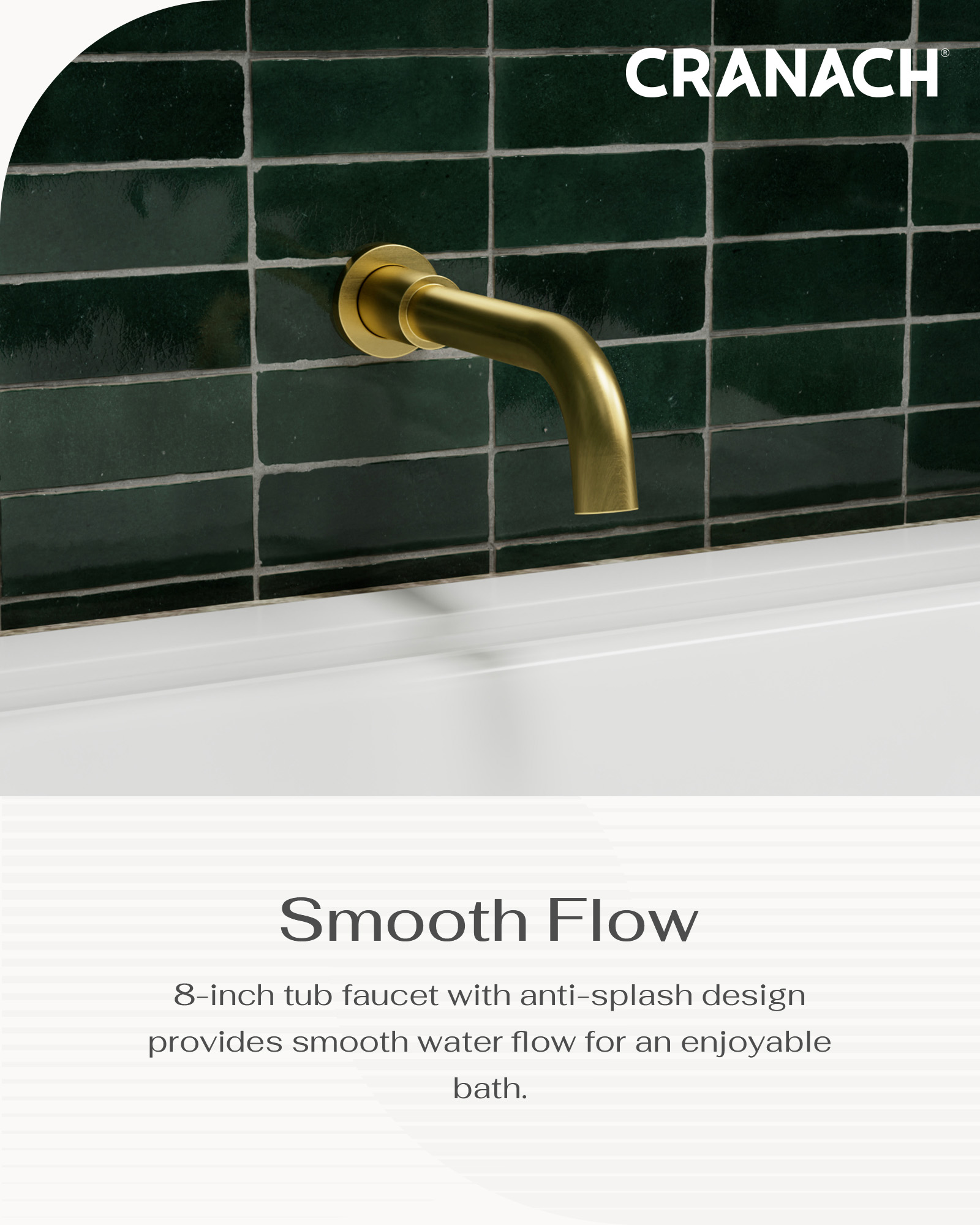 • 5-inch threaded tub spout with anti-splash design delivers smooth and even water flow.