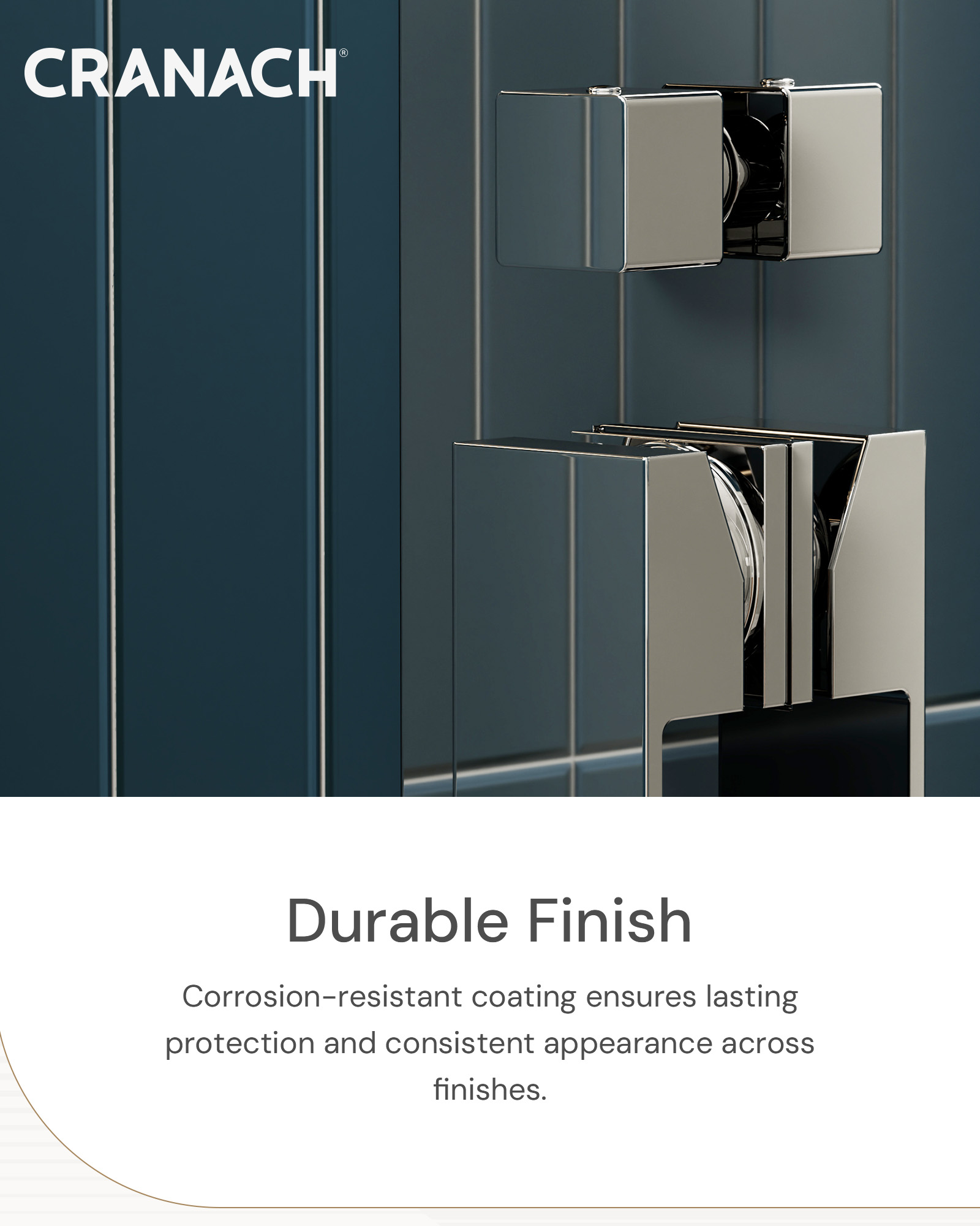 • Ceramic cartridge, crafted in Europe, and brass valve body ensure exceptional durability and reliability.