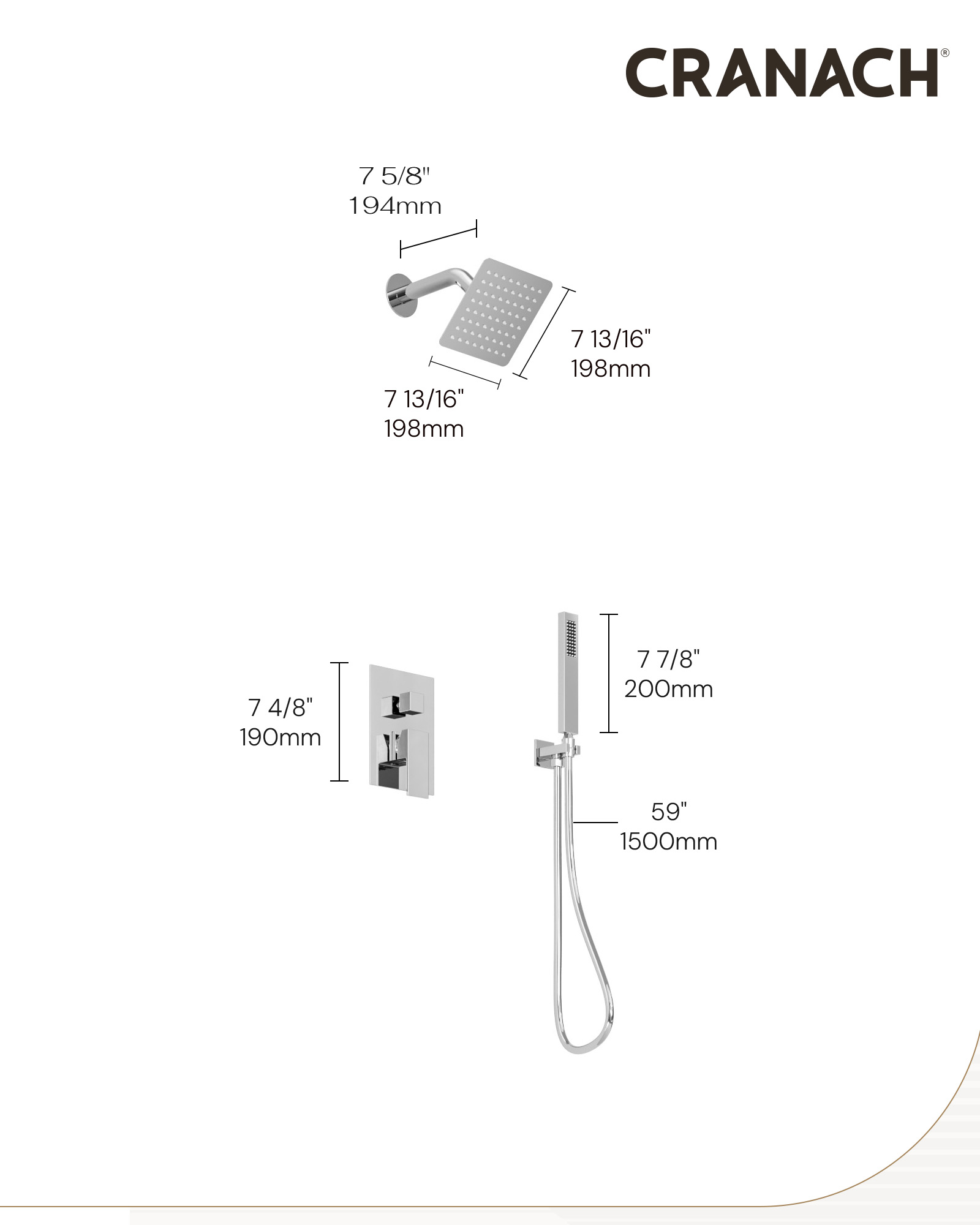 • Handshower Appearance: Square