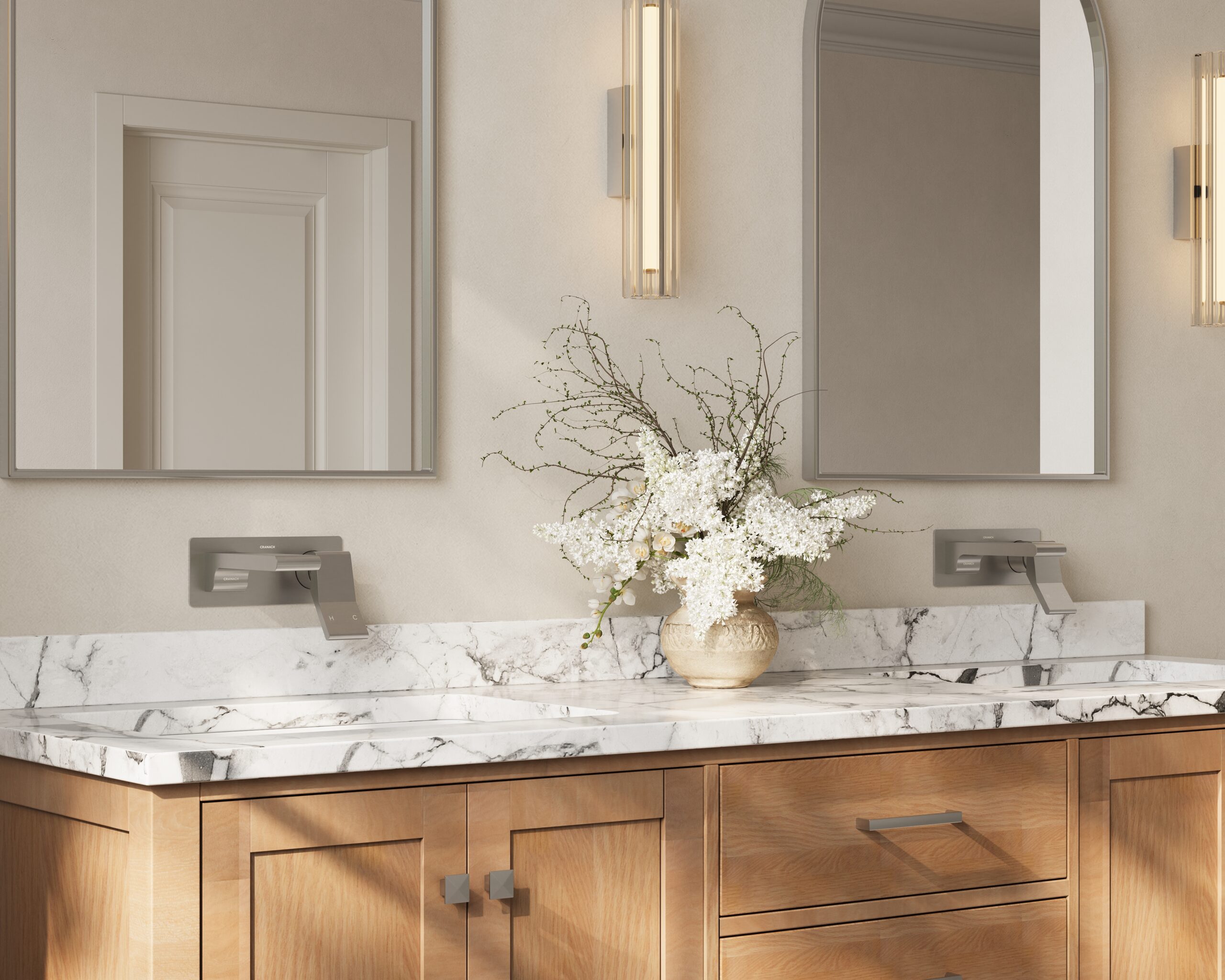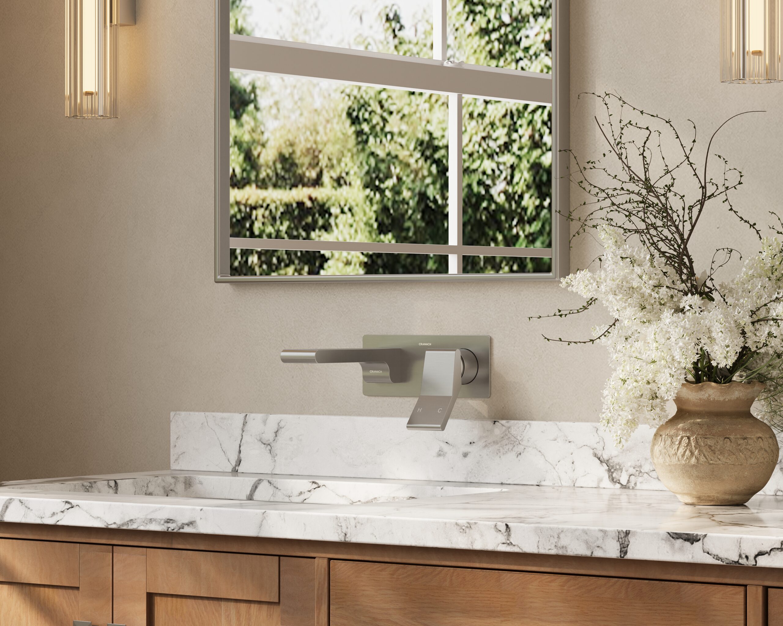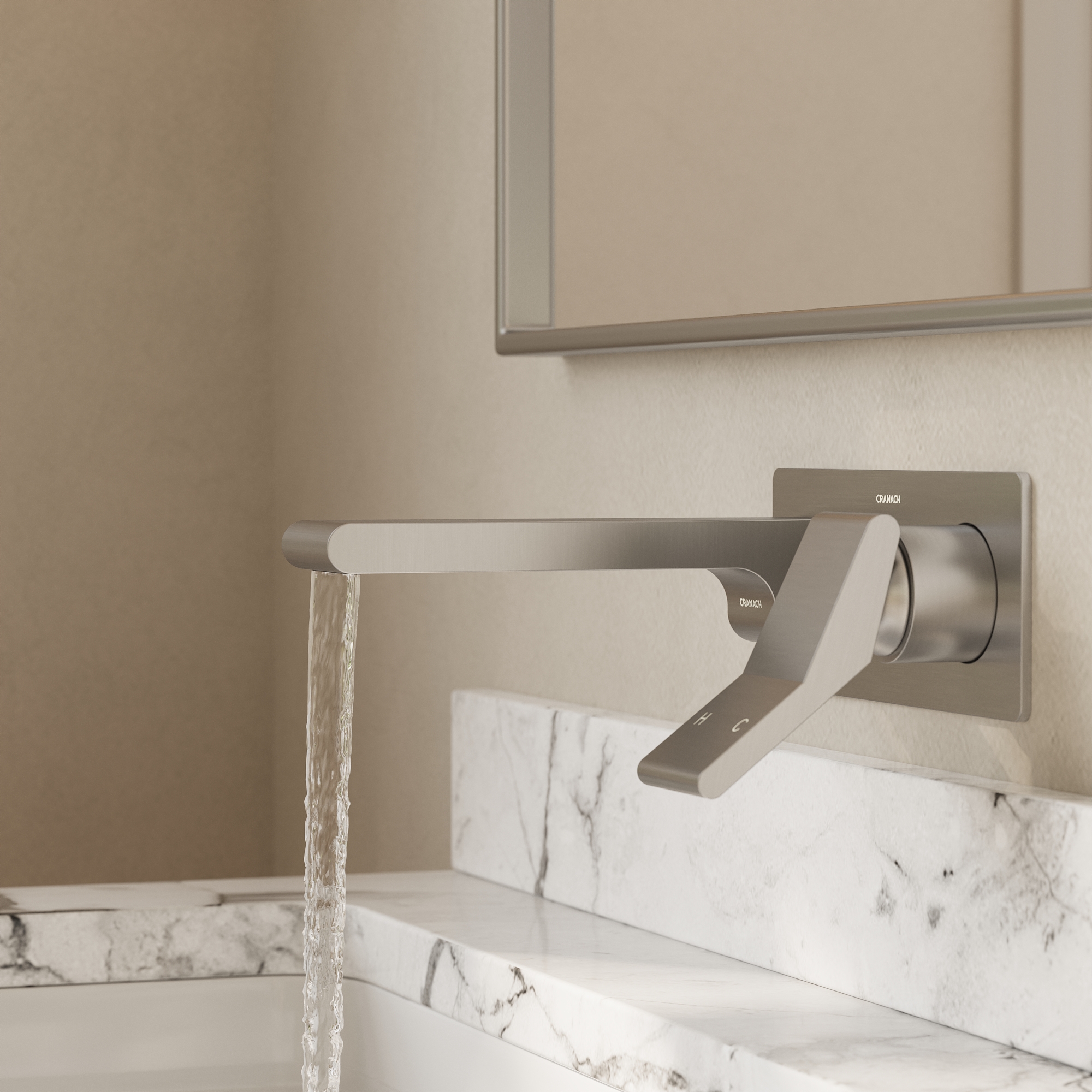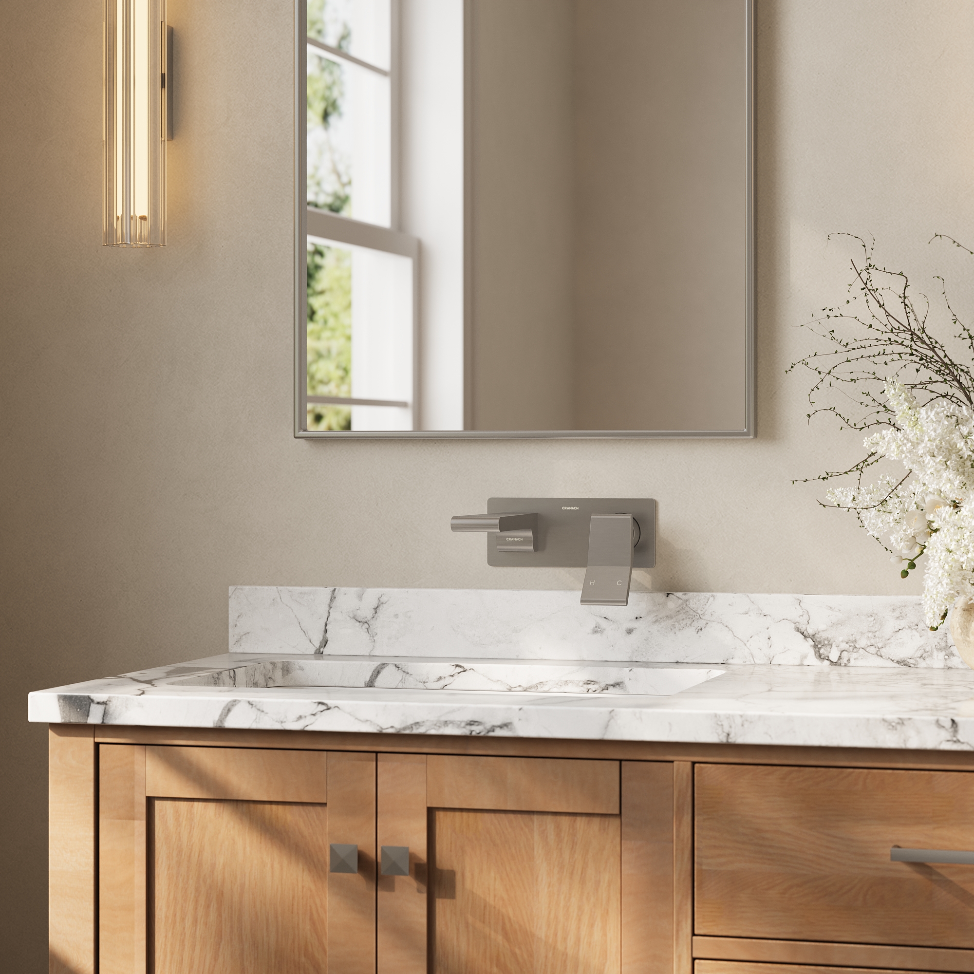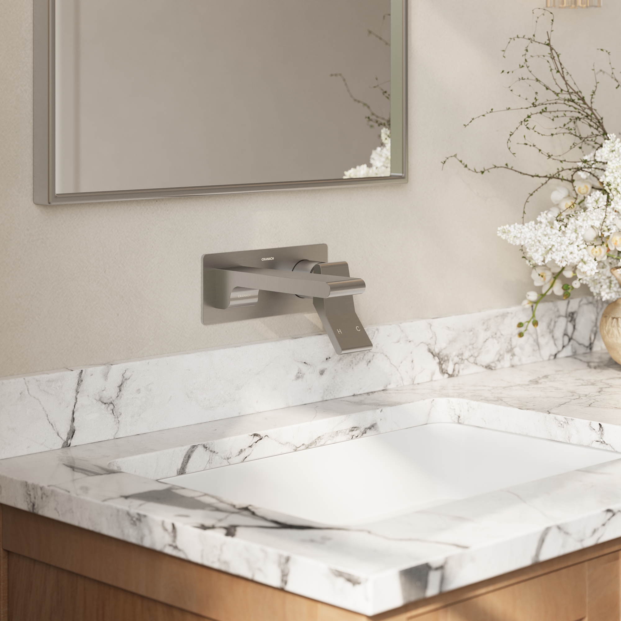 Wall-mount bathroom sink faucet with lever