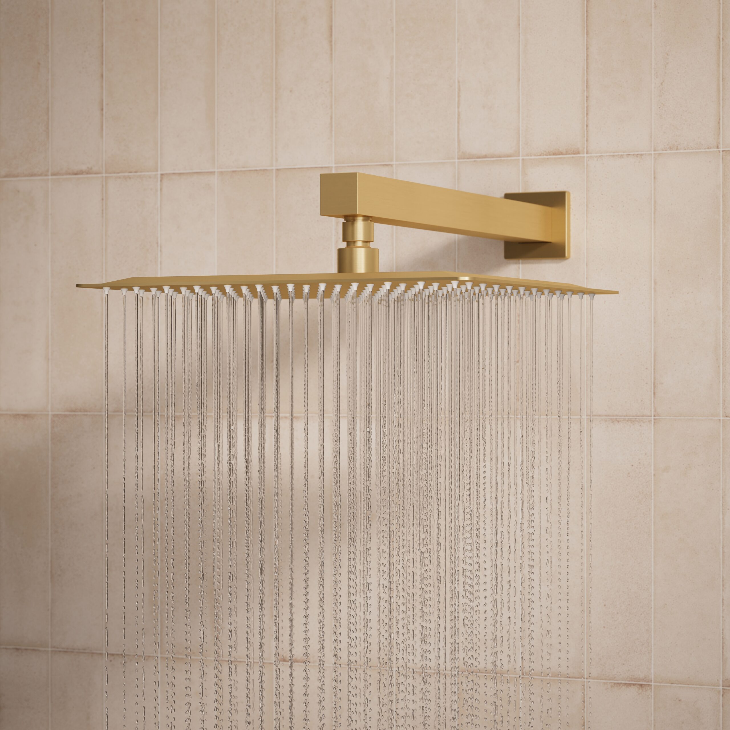 • 12-inch rain showerhead provides a strong flow for a relaxing, spa-like experience and tilts up to 15° for added adjustability.