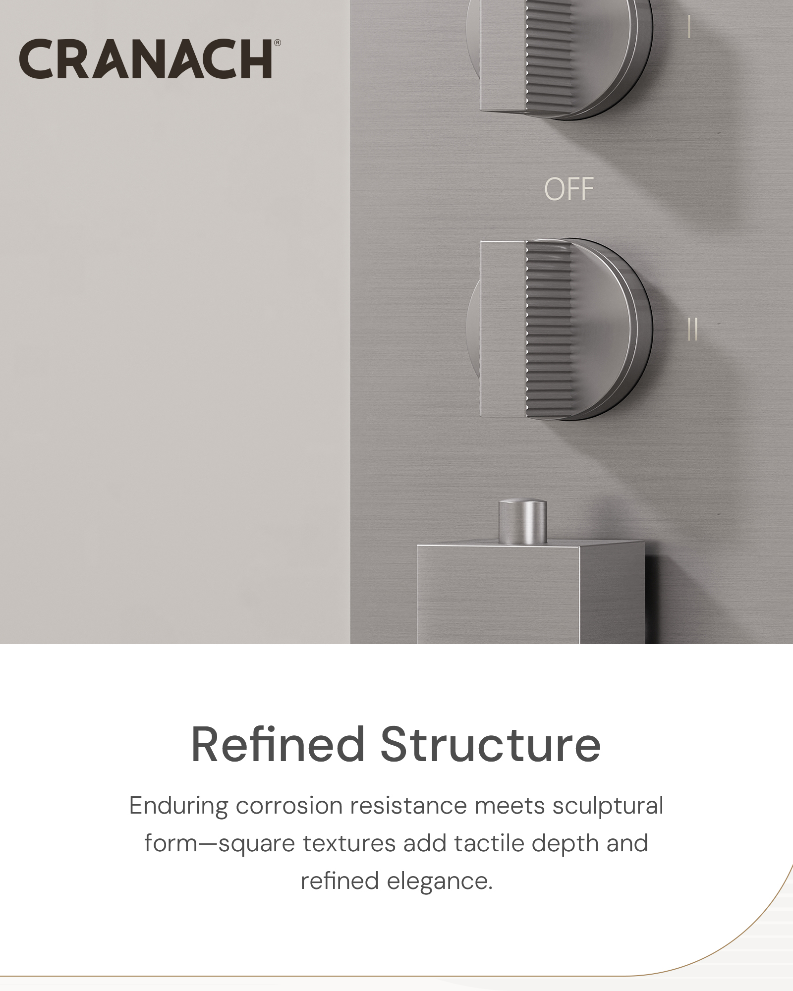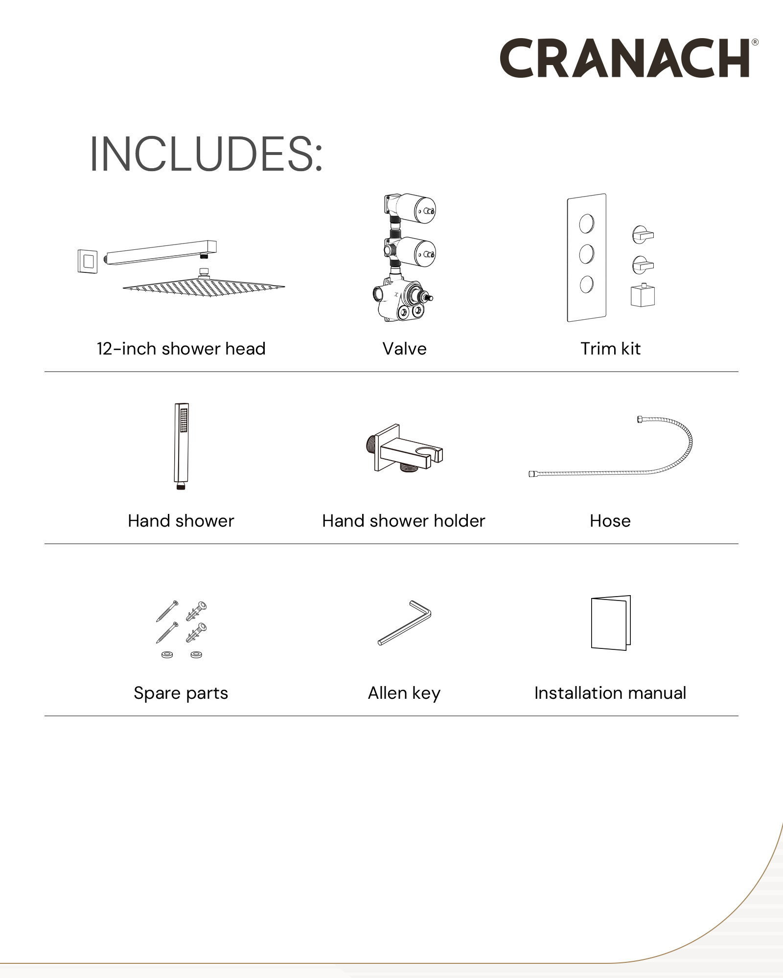 • Ceramic cartridge, crafted in Europe, and brass valve body ensure exceptional durability and reliability.