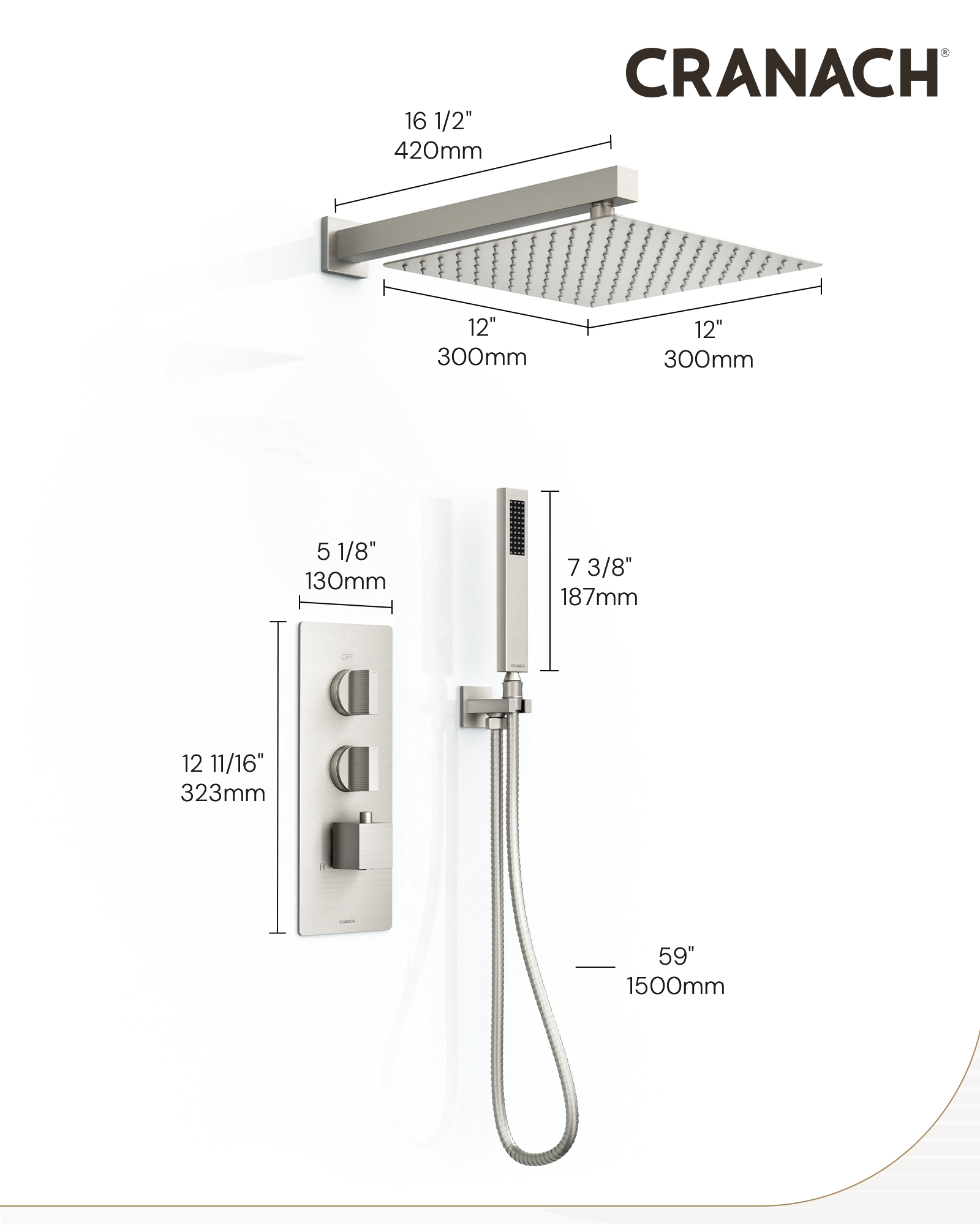• Handshower Appearance: Square