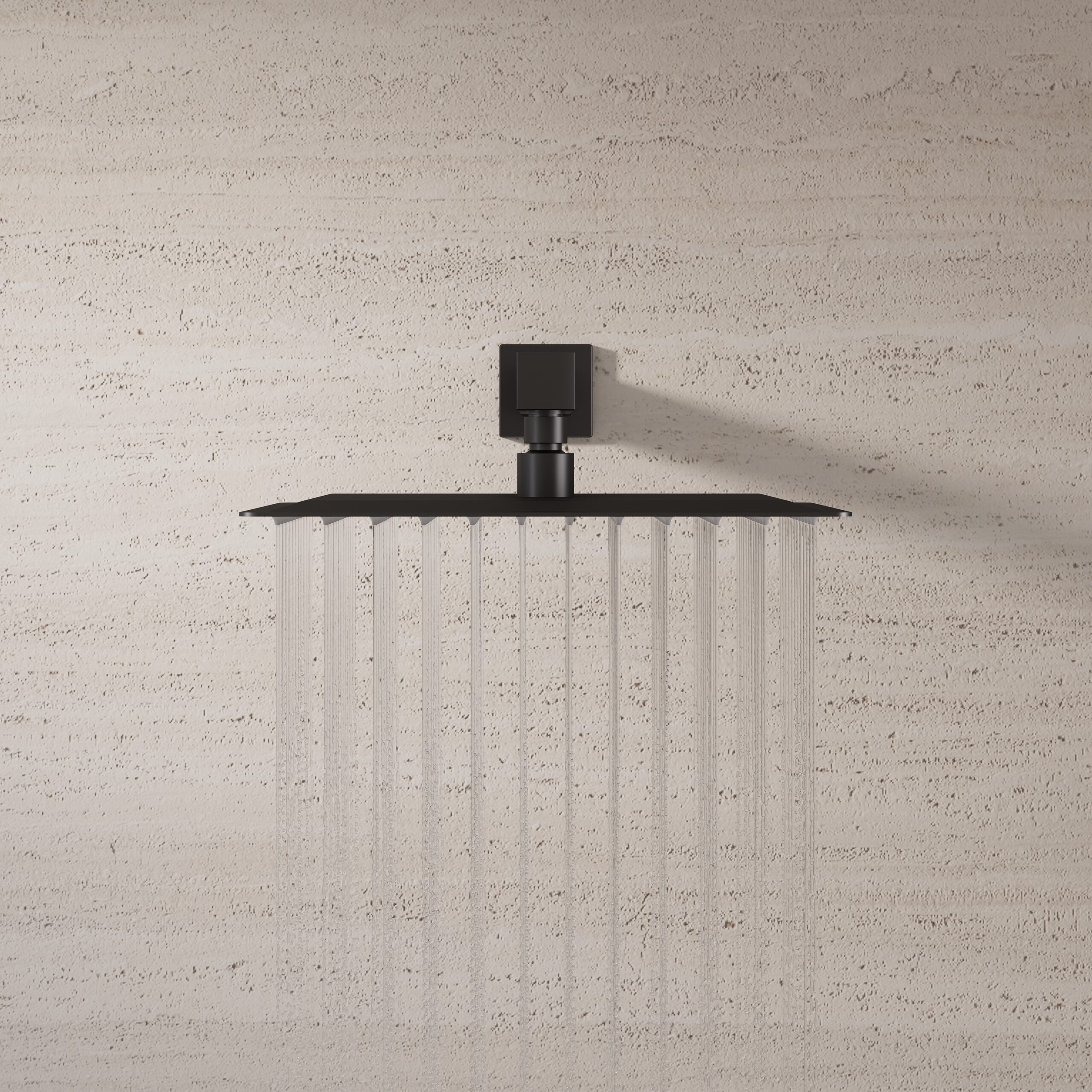 • 12-inch rain showerhead provides a strong flow for a relaxing, spa-like experience and tilts up to 15° for added adjustability.