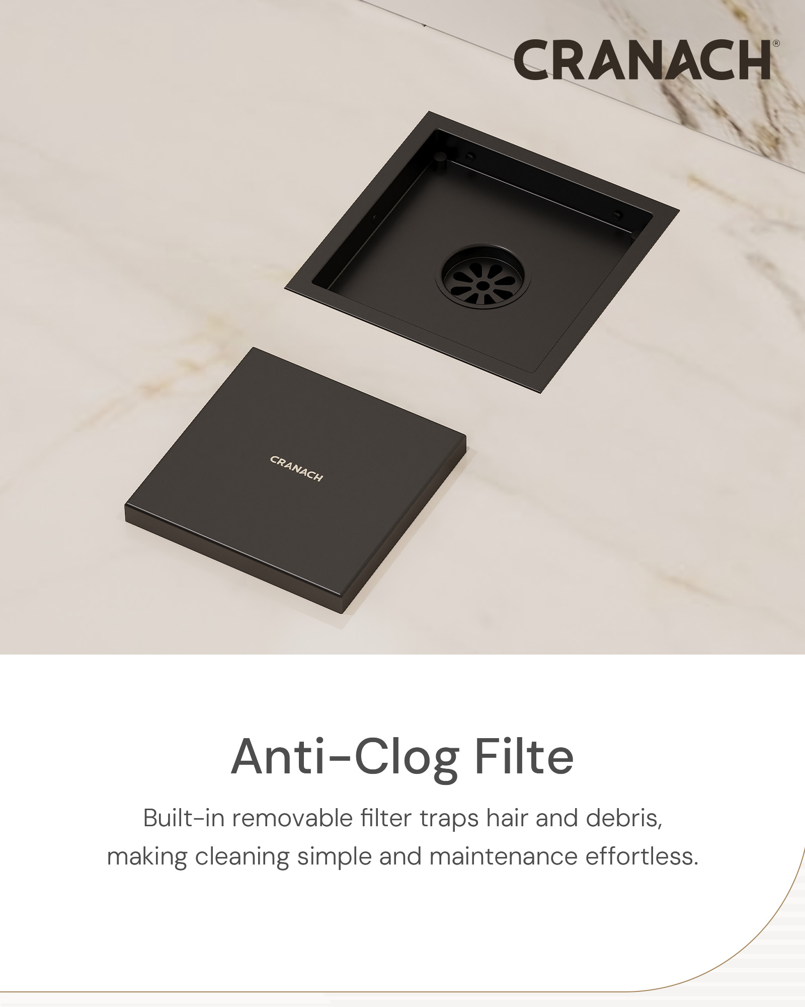• Design: Clog-resistant cover plate effectively traps hair and debris for easy cleaning.