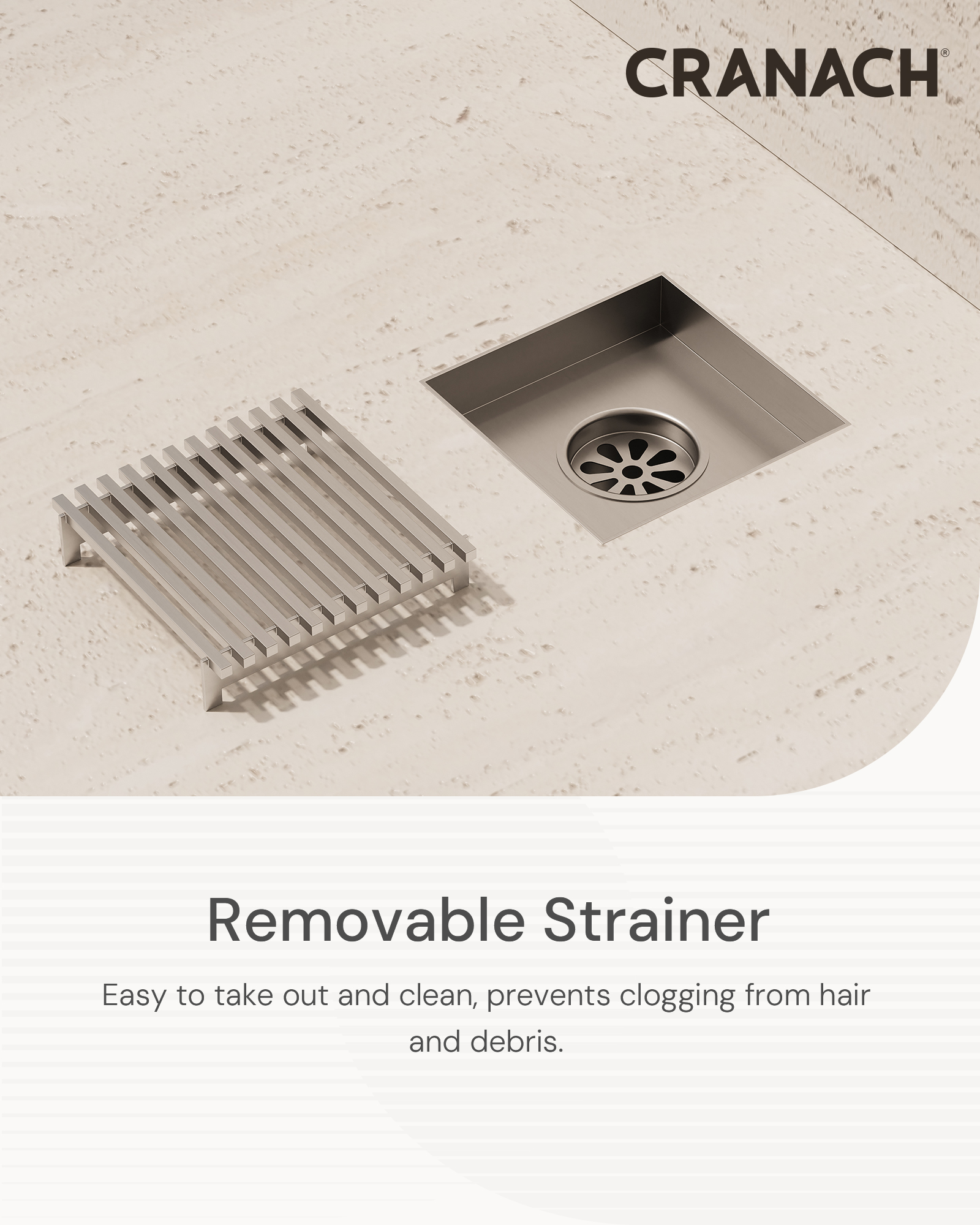 • Design: Clog-resistant cover plate effectively traps hair and debris for easy cleaning.