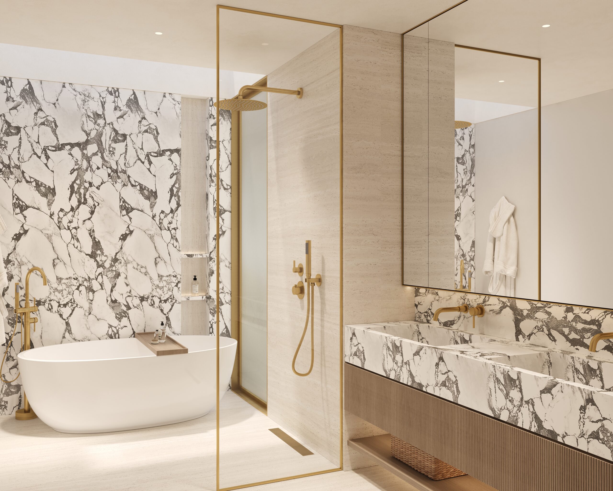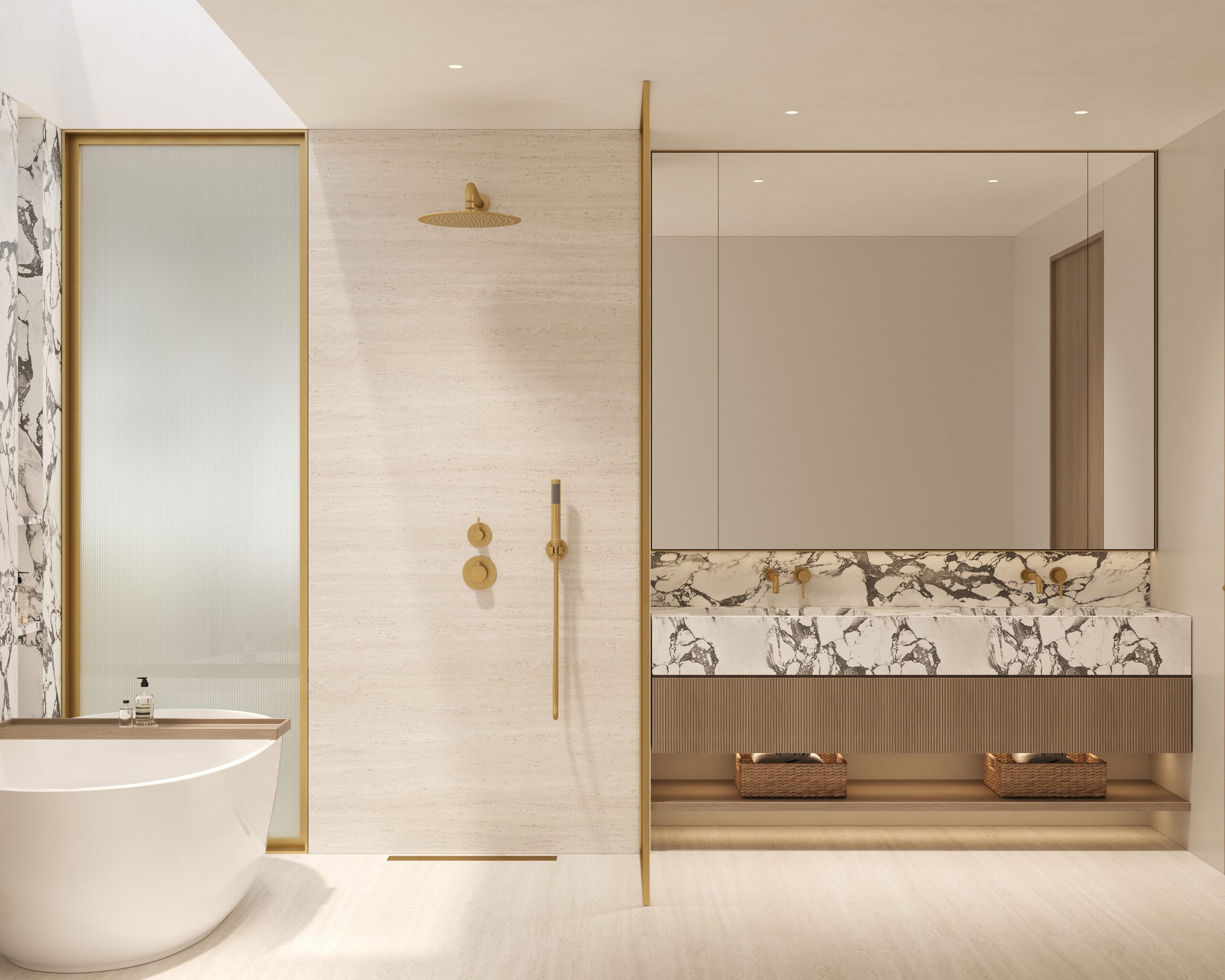 • Wall-mounted installation design offers a clean look and helps save space in the shower area.