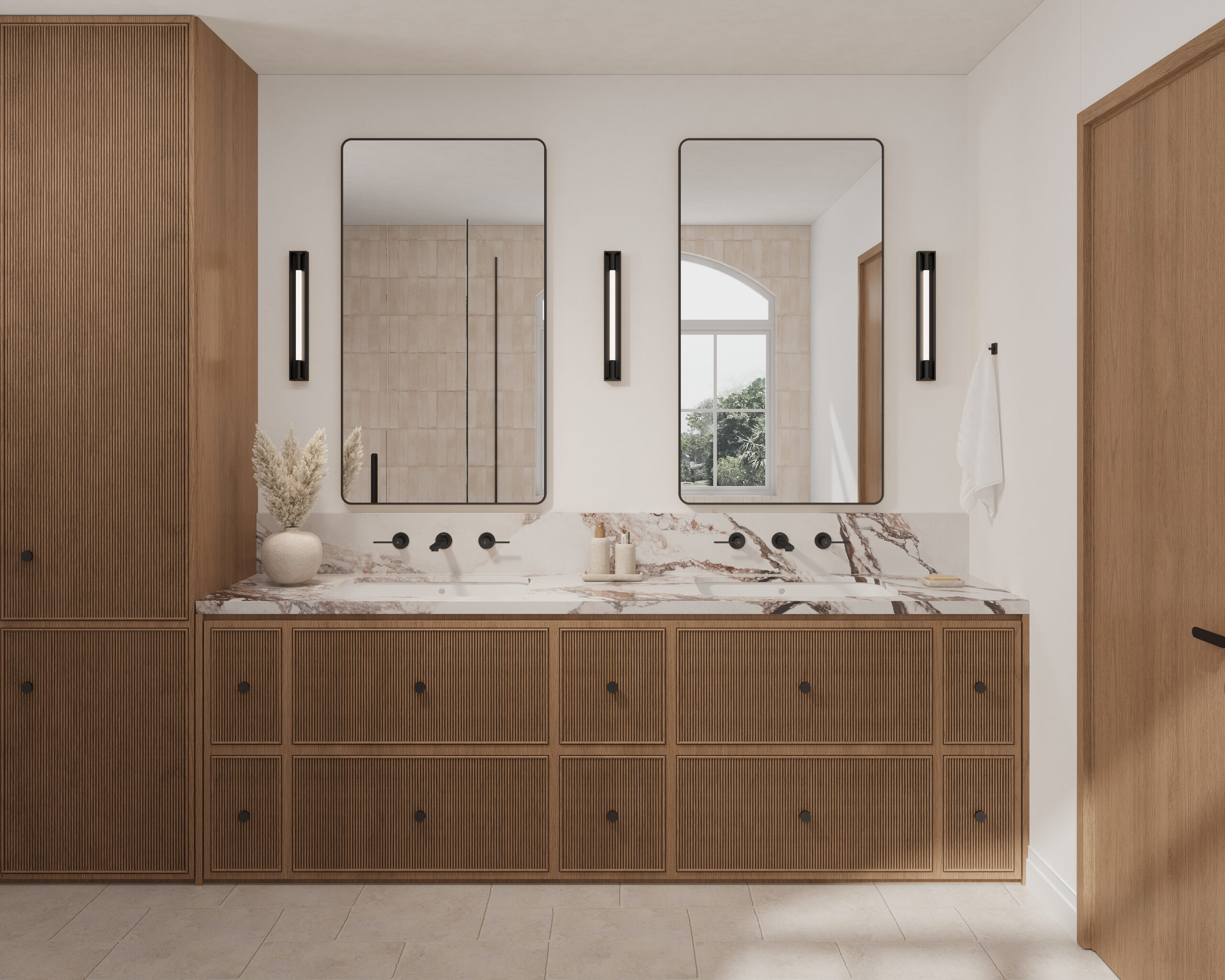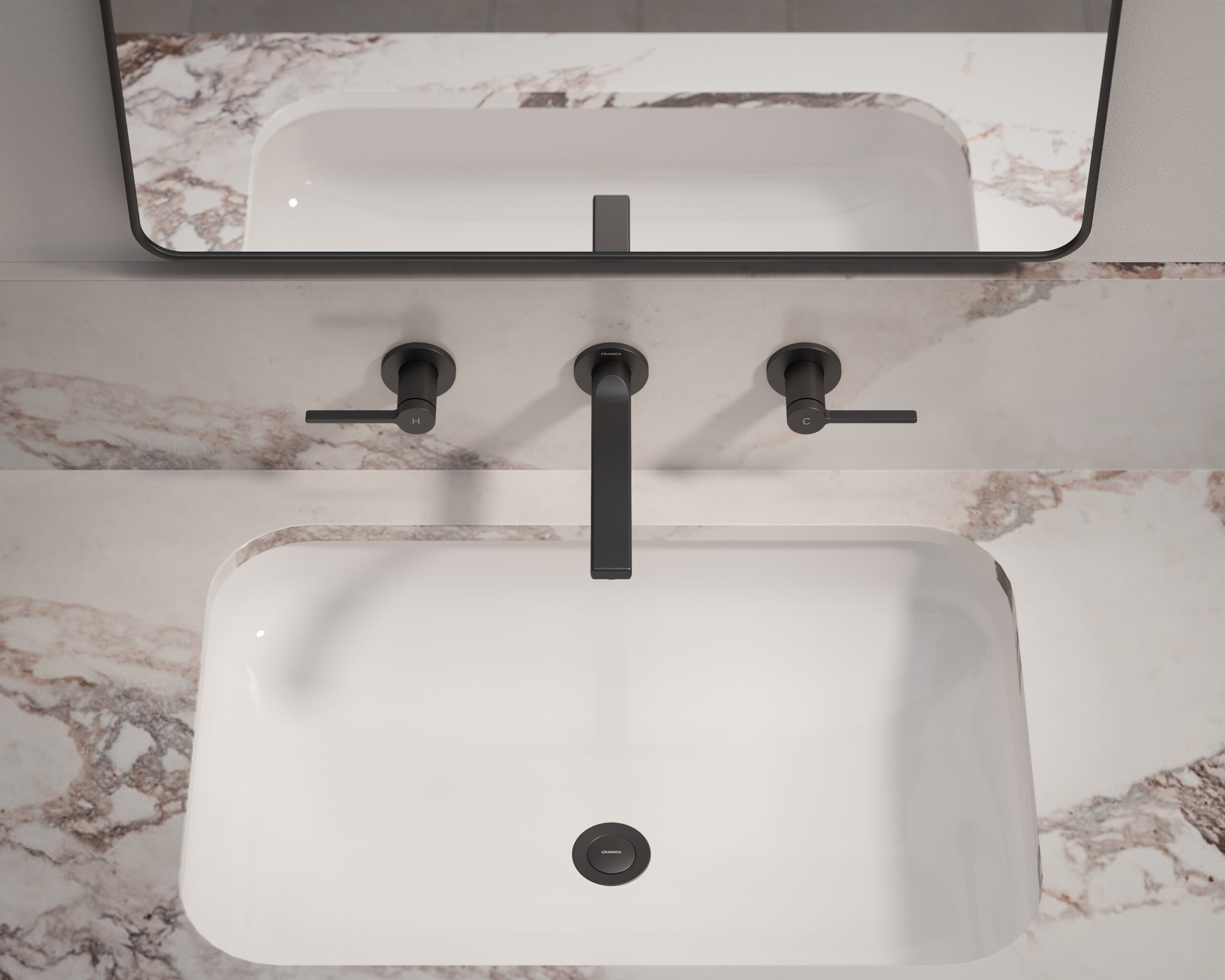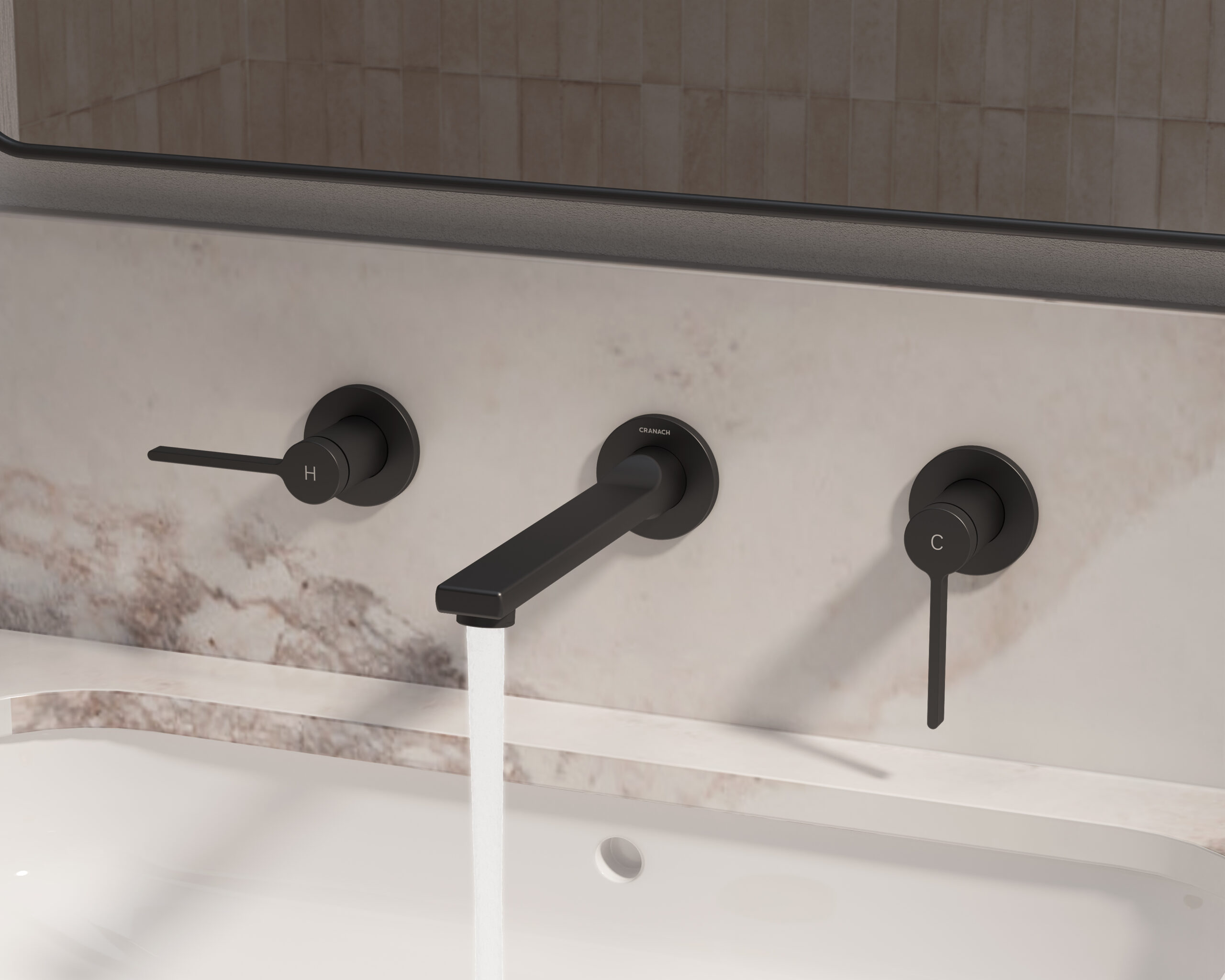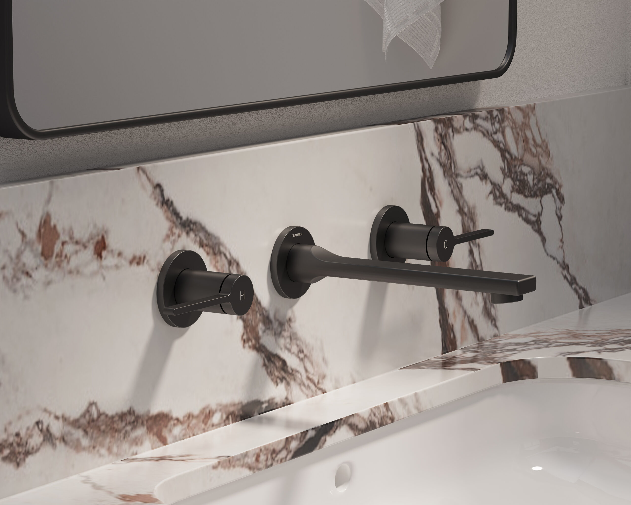 Wall-mount bathroom sink faucet with lever handles