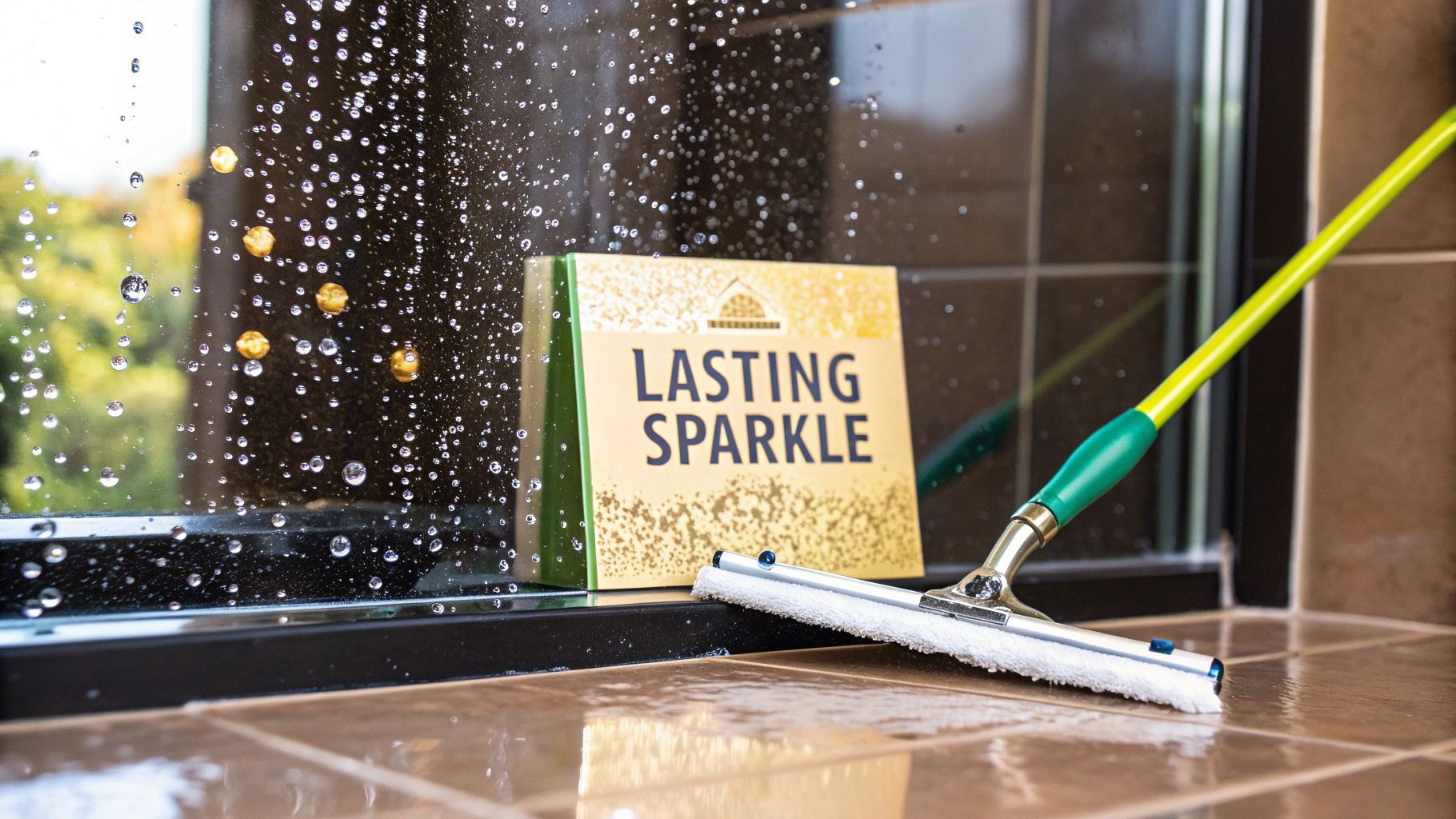 Sparkling fixtures and crystal-clear glass are the finishing touches that make a clean shower truly shine. It's one thing to scrub the tiles, but your shower head, faucets, and glass doors are absolute magnets for hard water stains and soap scum. Paying close attention to these areas is what separates a decent clean from a brilliant one.